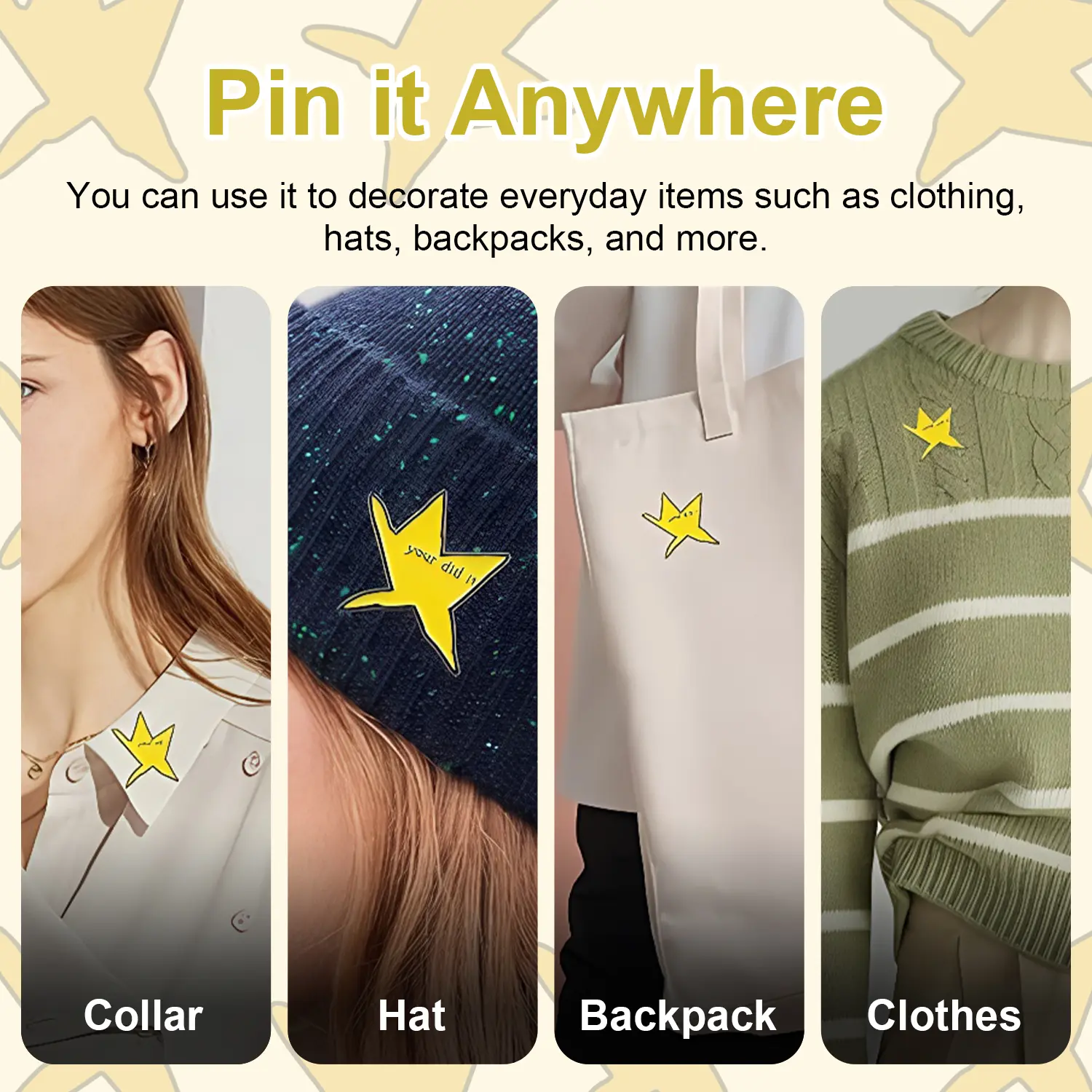 Celebrate achievements with a smile! “You Did It” star enamel pins are a fun, lighthearted way to reward yourself or cheer someone on.