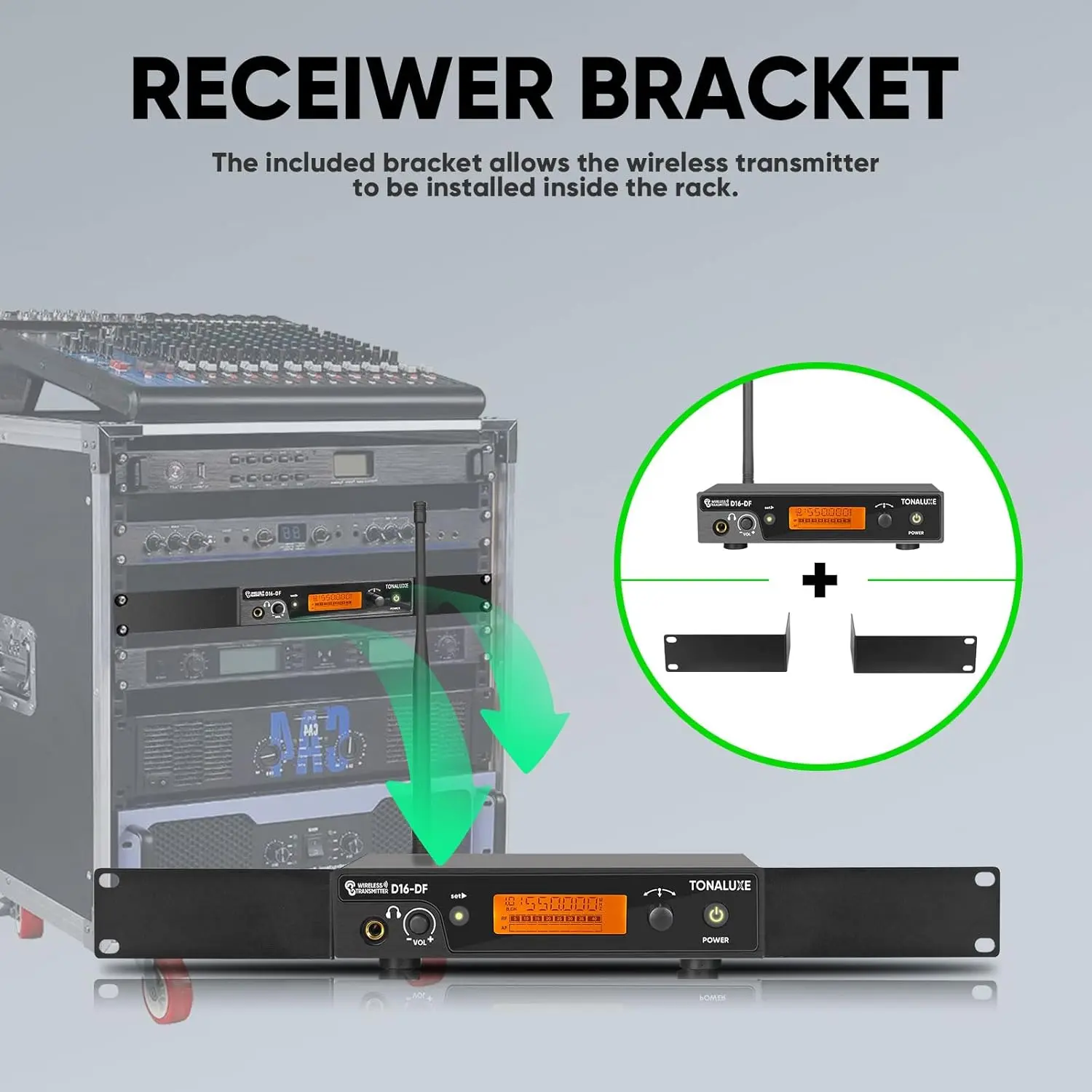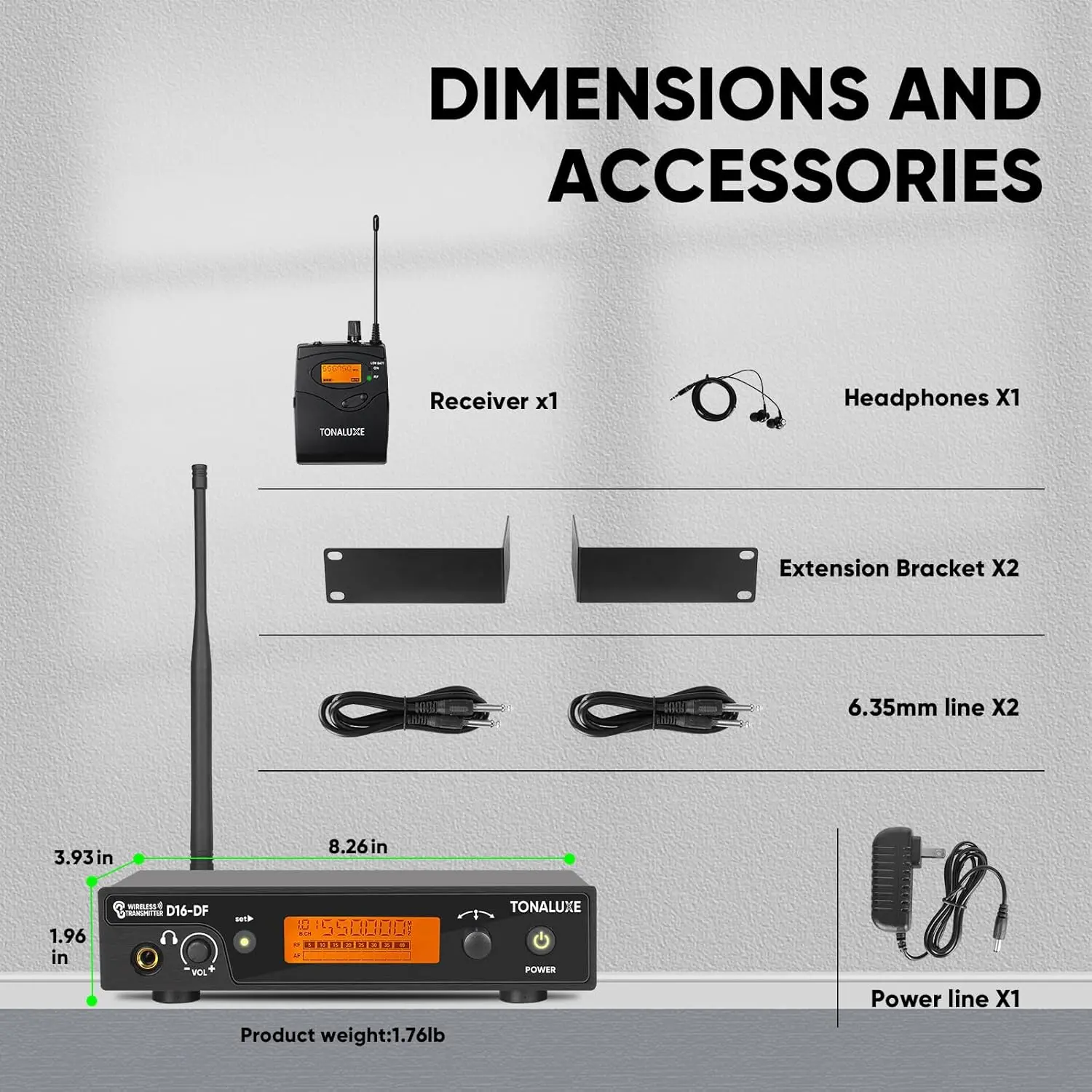 ✨ 4 Pack System for live performances. Includes a 100CH UHF Metal Rackmount Transmitter. Perfect for bands, churches, and stage performances. Offers a 262ft range for reliable audio transmission.