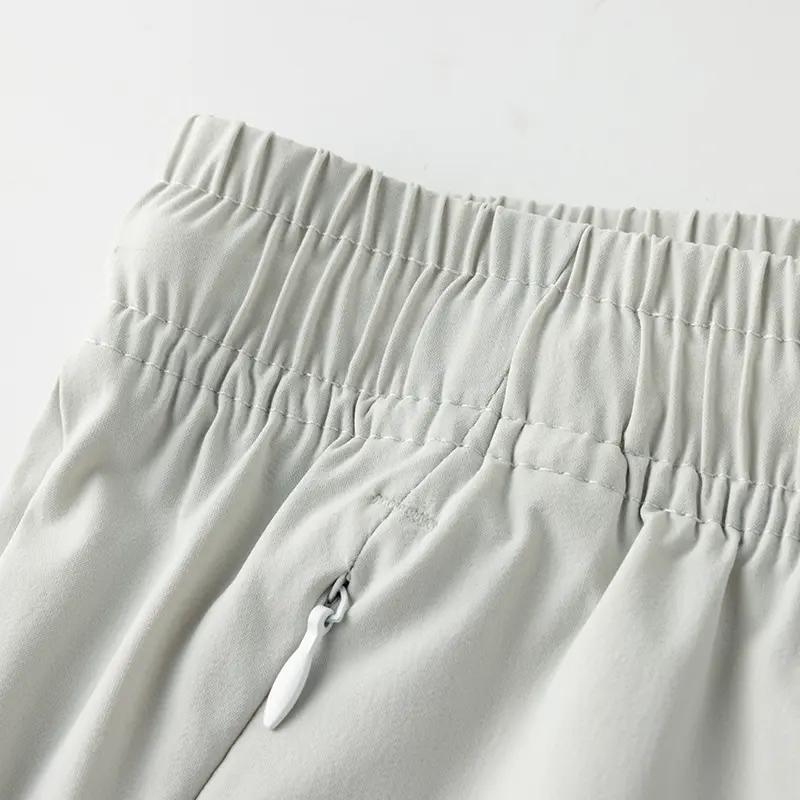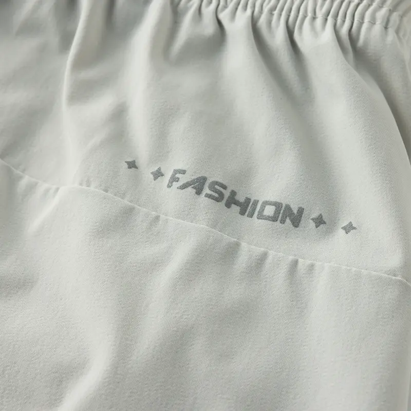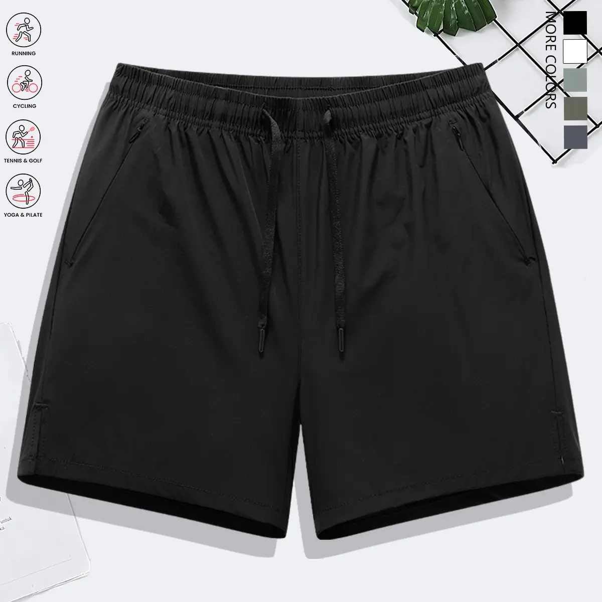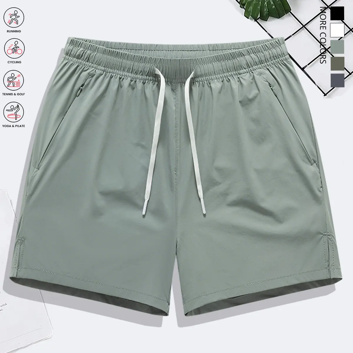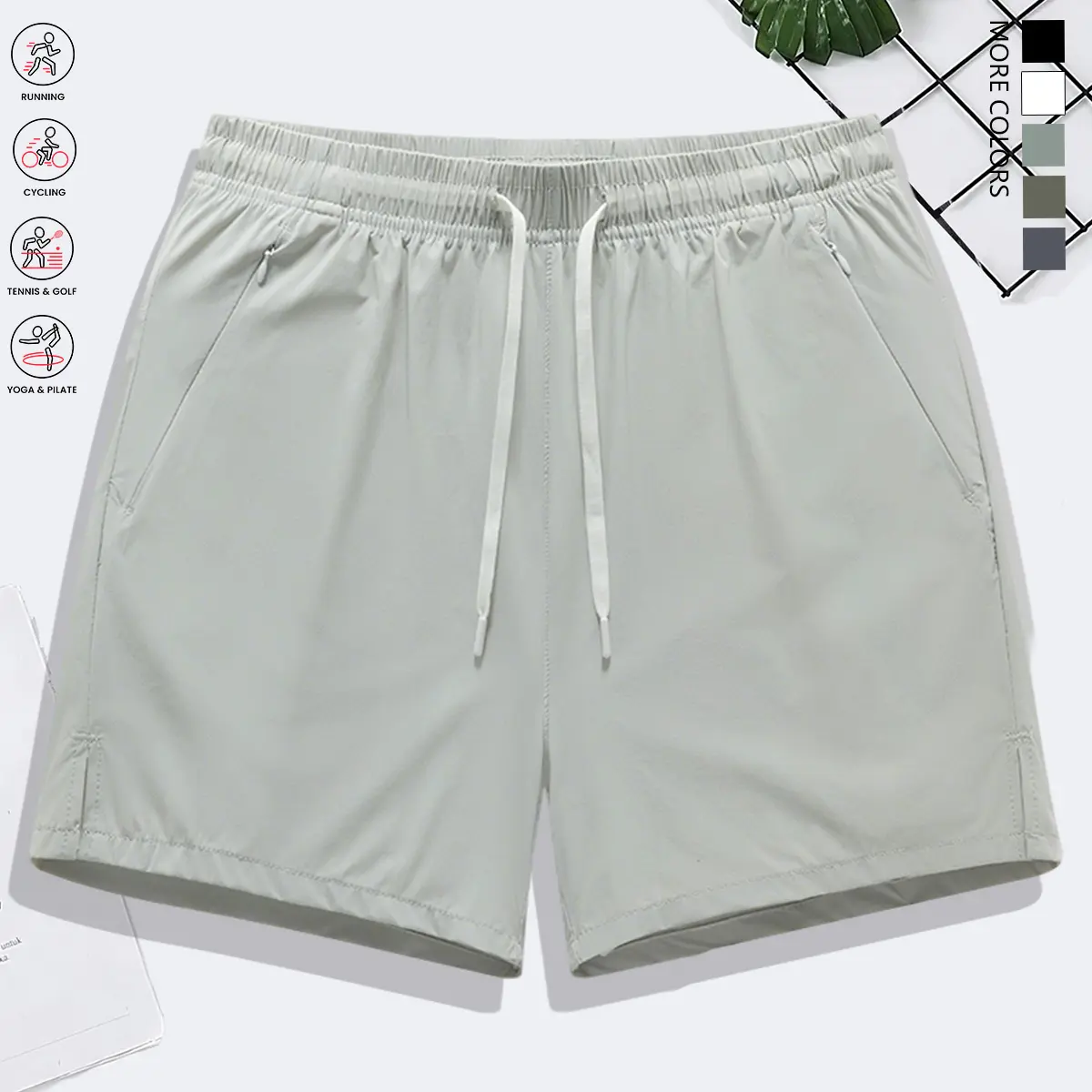 Men’s solid-color casual shorts with zippered pockets; summer fashion drawstring athletic shorts suitable for fitness and outdoor wear; comfortable shorts with a casual, minimalist style featuring letter print and drawstrings.