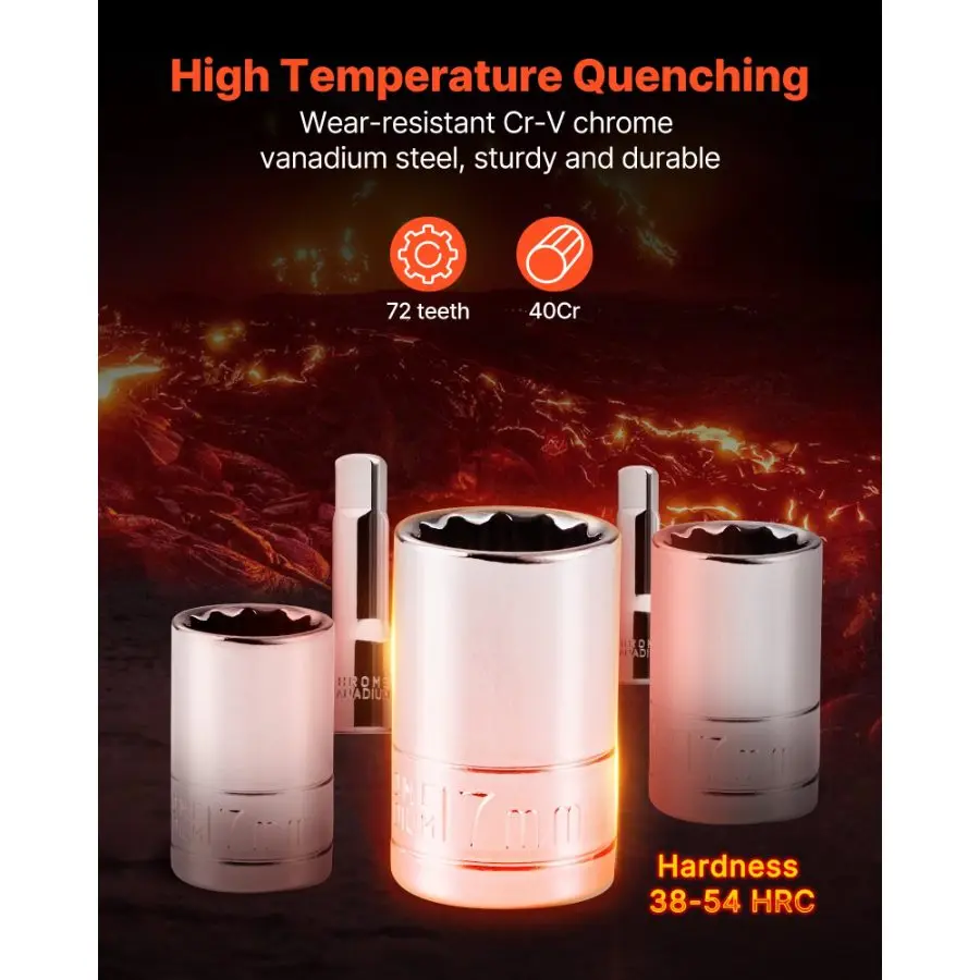 Our tool set tackles high-intensity tasks effortlessly. It ensures prolonged effectiveness with top-notch materials. Whether automotive repairs or home renovations, this socket set is your dependable assistant.