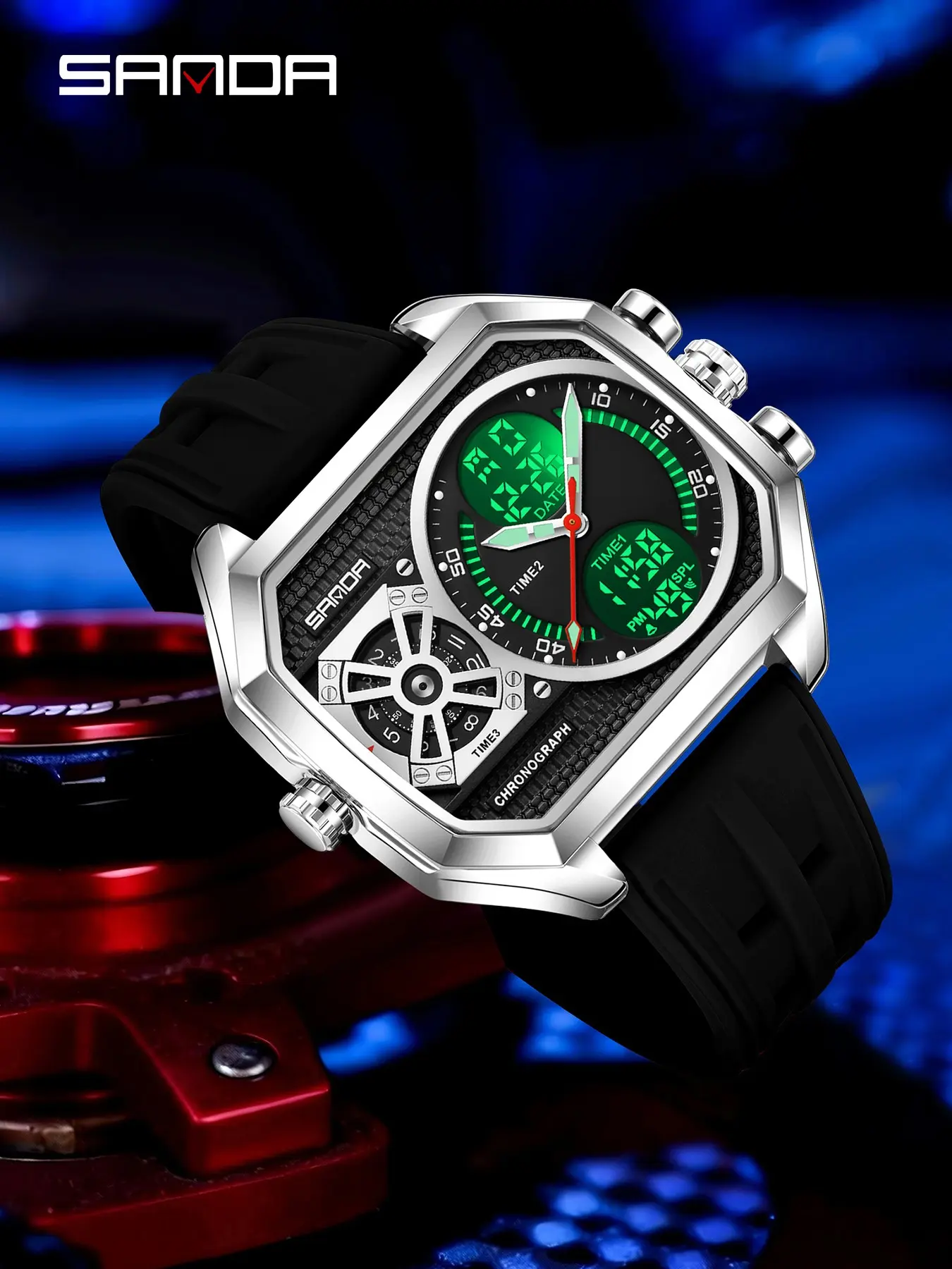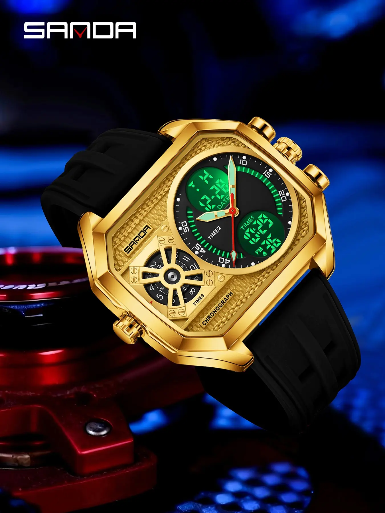 Sanda Multifunctional Digital Watch, Alloy Case, Waterproof, Luminous, Stopwatch, Alarm, Hourly Chime, Perfect Birthday Gift