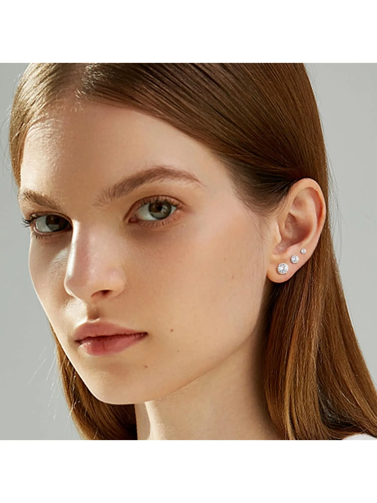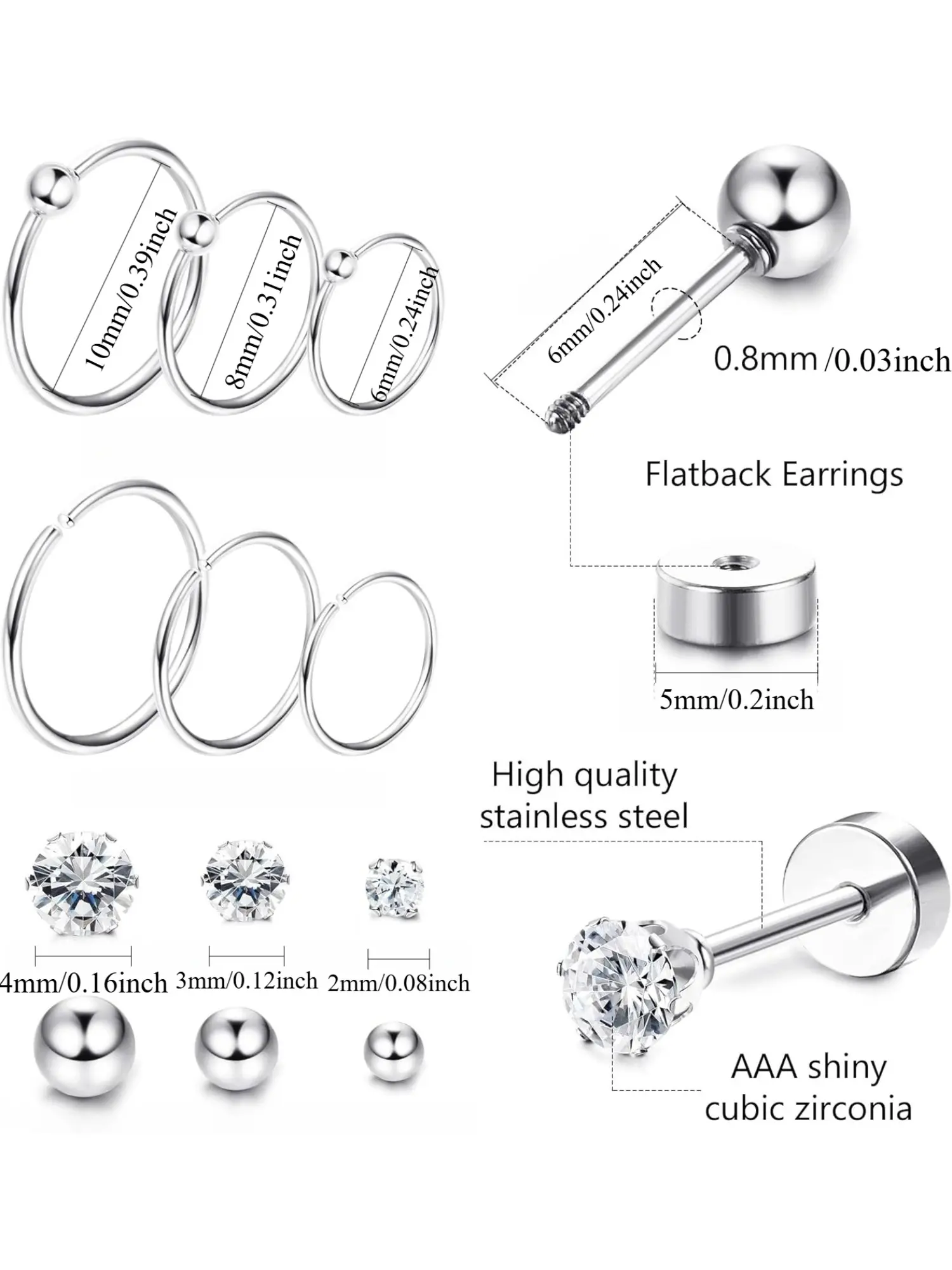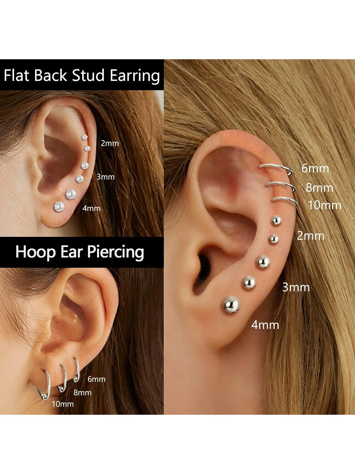 12Pairs Surgical Steel Tiny Stud Earrings for Women Hypoallergenic Flat Back Cartilage Earrings Cubic Zirconia Tiny Ball Earrings Hoops Conch Helix Cartilage Piercing Jewelry