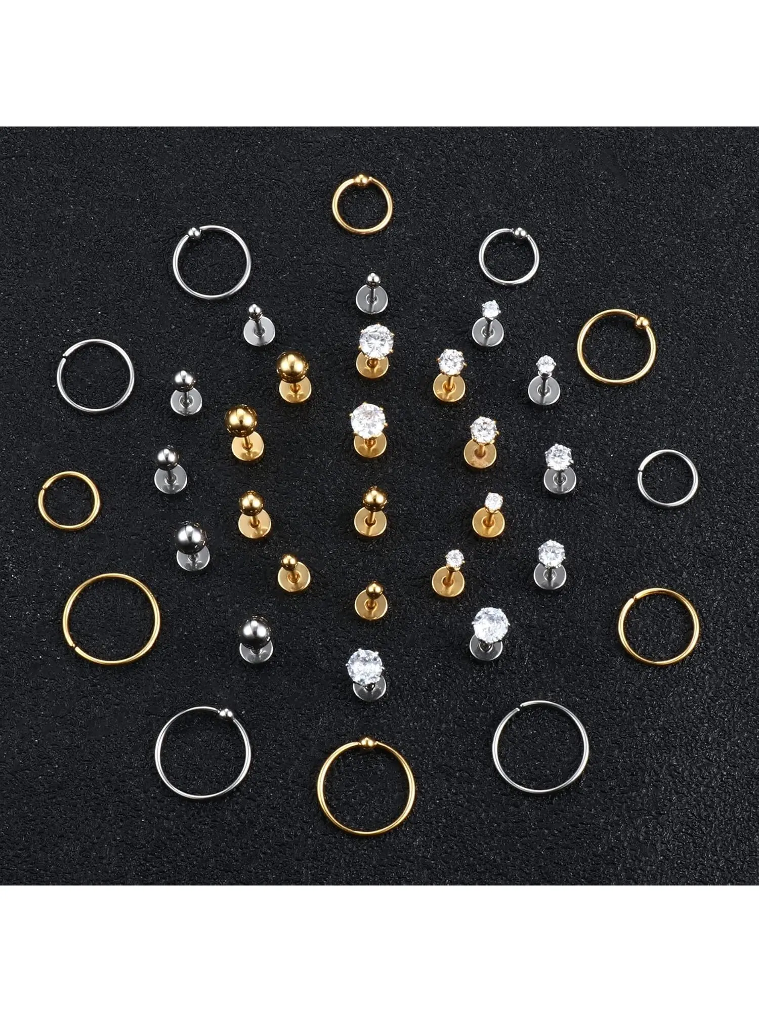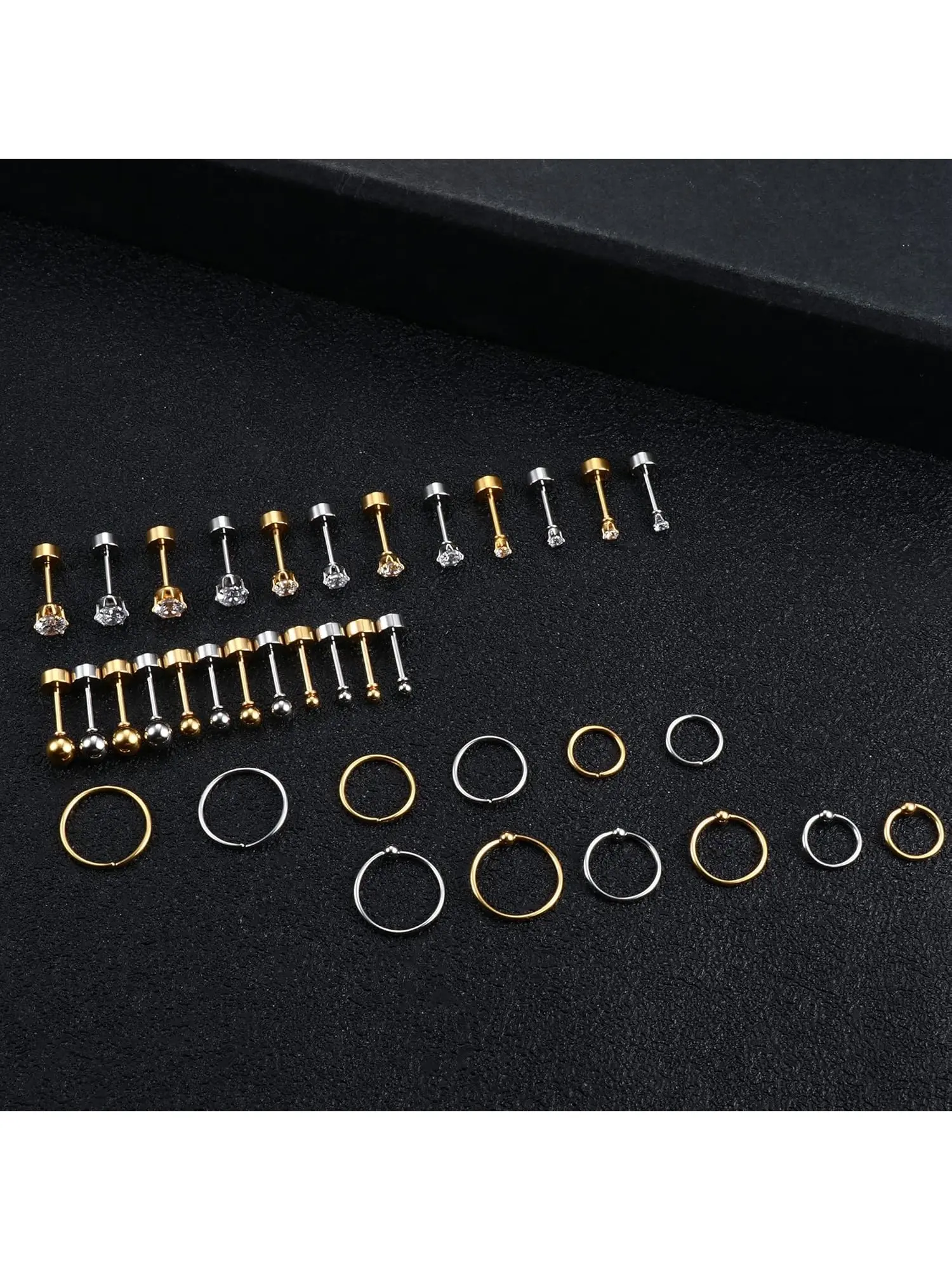 42Pcs 20G Nose Rings for Women Men Stainless Steel 10MM Nose Rings Hoop Screw L Shaped Nose Studs Nose Piercing Jewelry Nose Piercings Kit