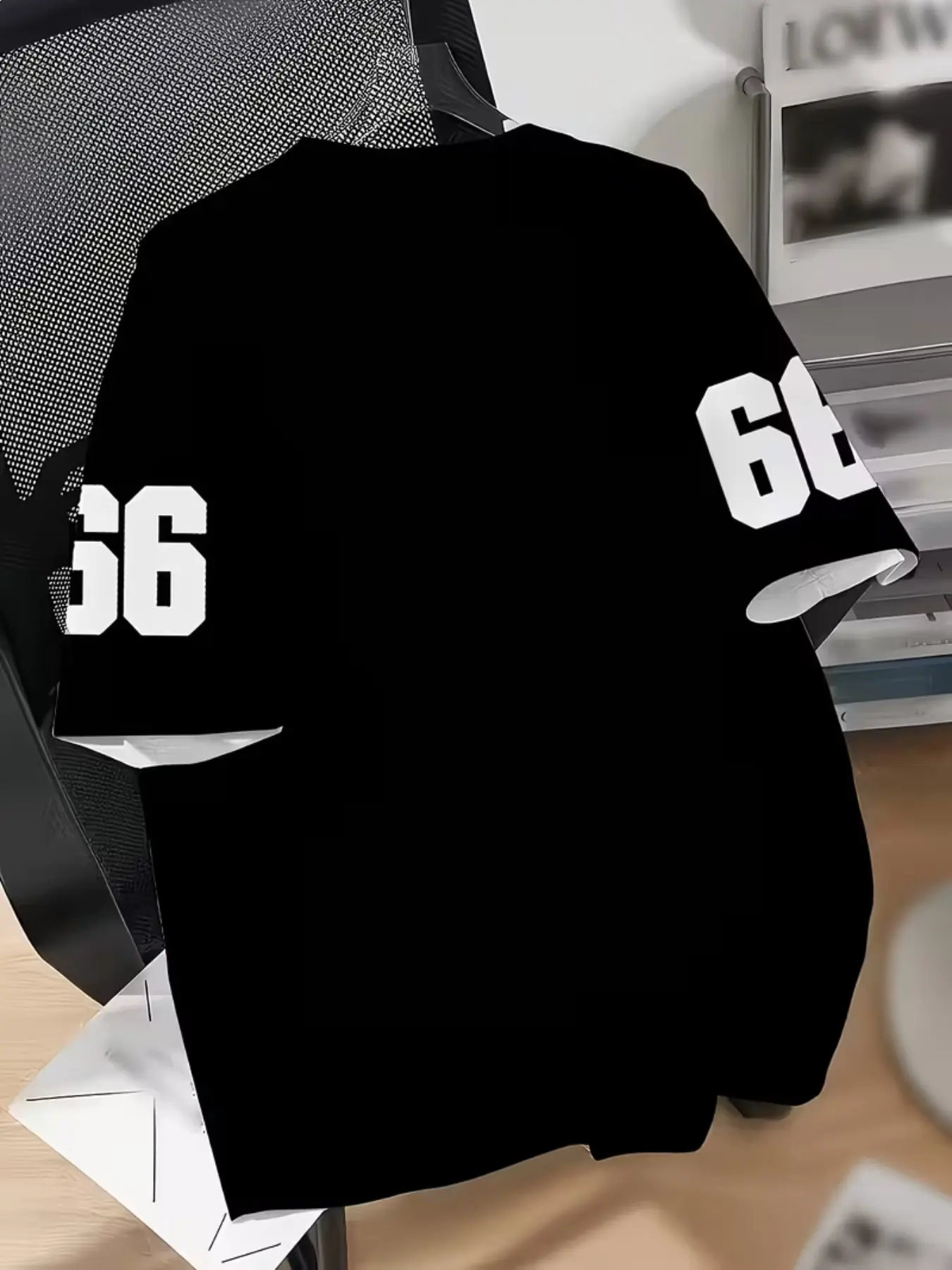Men's Pattern T-Shirt, // Block Bold '28' Number, Breathable Summer Short Sleeve, Casual Streetwear, Ideal Gift