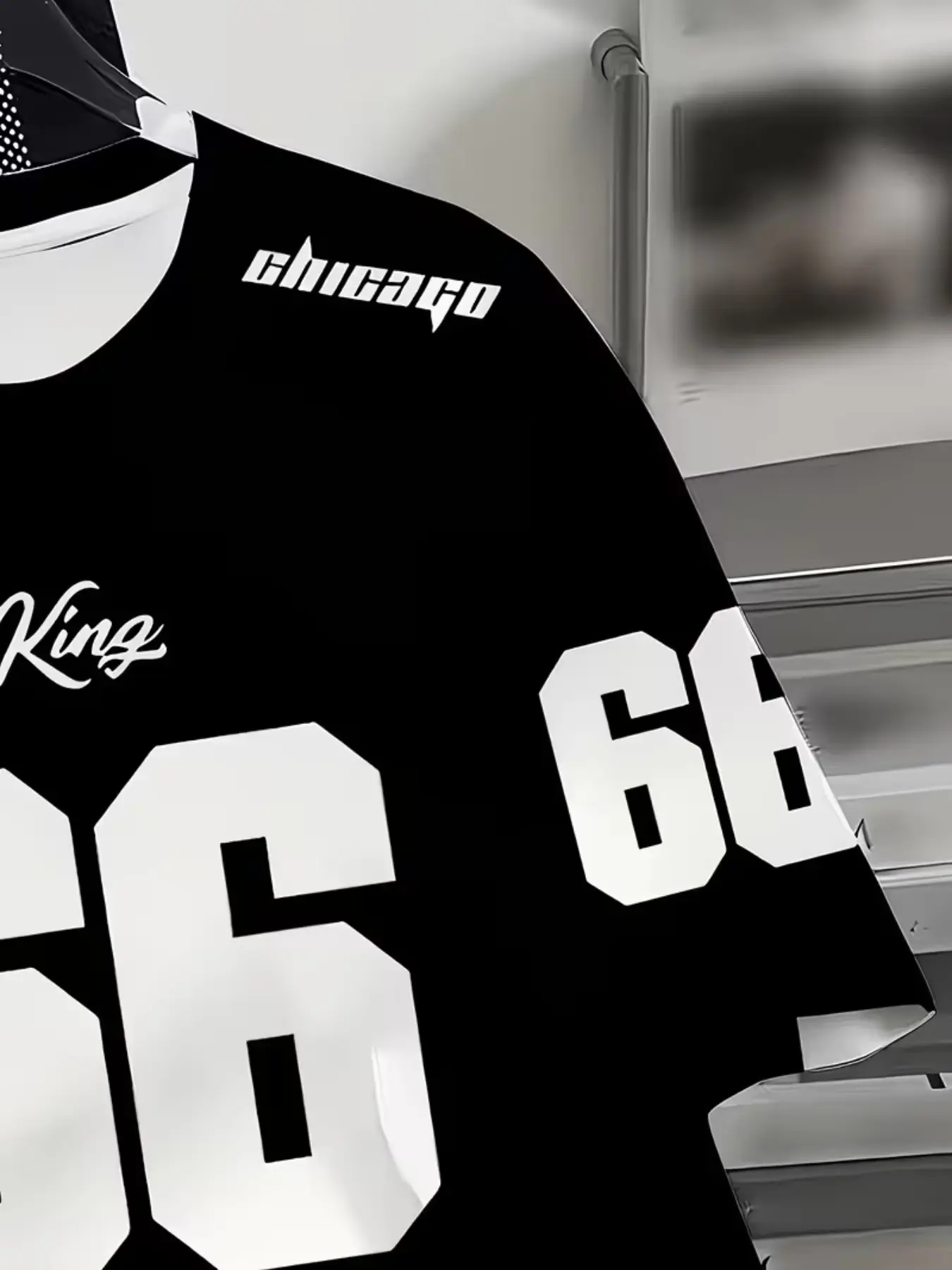 Men's New Casual Round Neck T-Shirt, Chicago Word Design, 32 Number Pattern, Polyester Knit Fabric, Stretchy, Soft Breathable, Outdoor Comfort