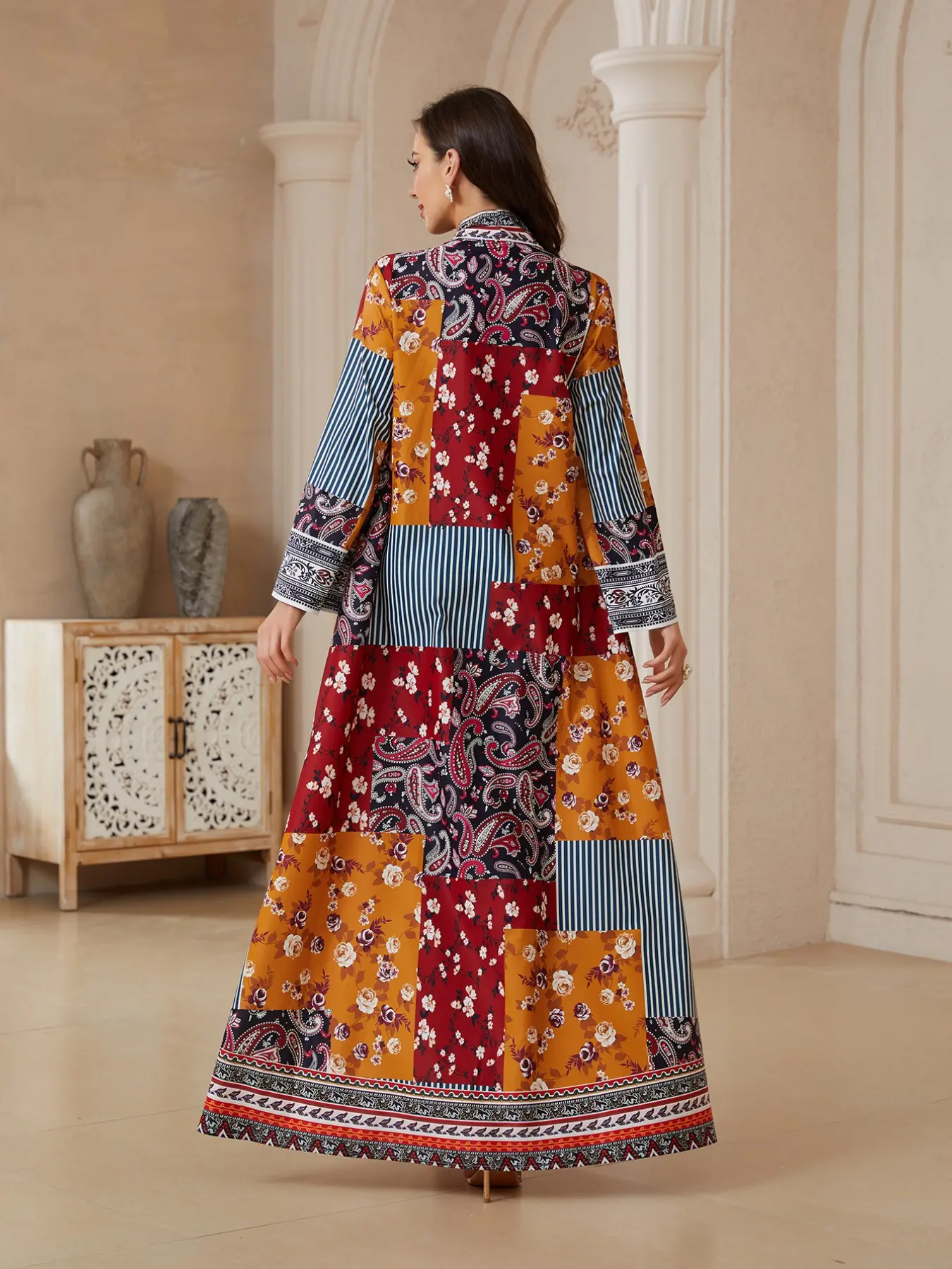 【Abaya Silhouette】: Designed in a classic abaya silhouette, offering both coverage and sophistication for various occasions.