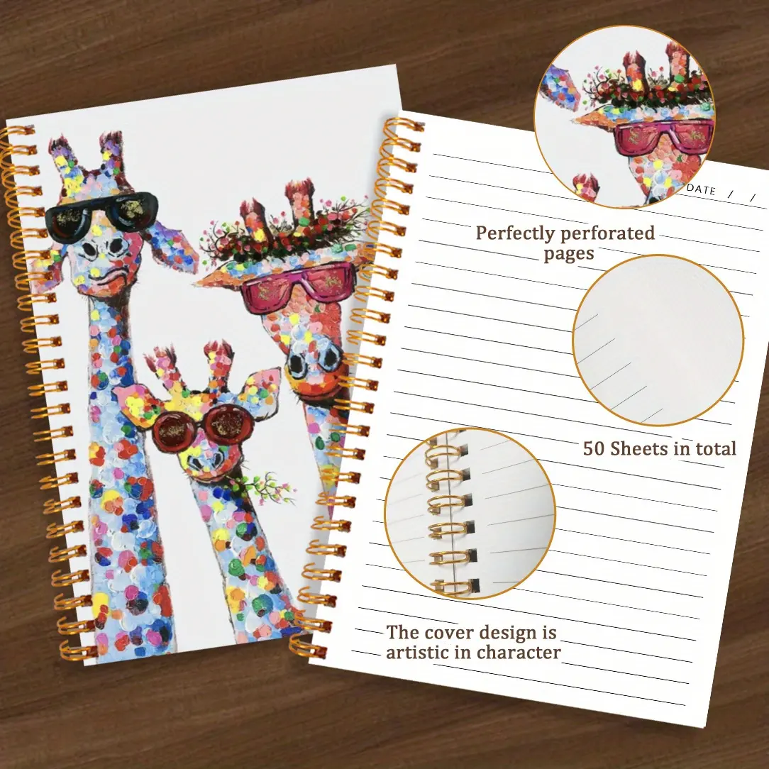 1PC Spiral Notebook, Watercolor Giraffe, for Work, Study and Gifts, Office, School Supplies Spiral Notebook 5.5*8.3in with 50 Sheets