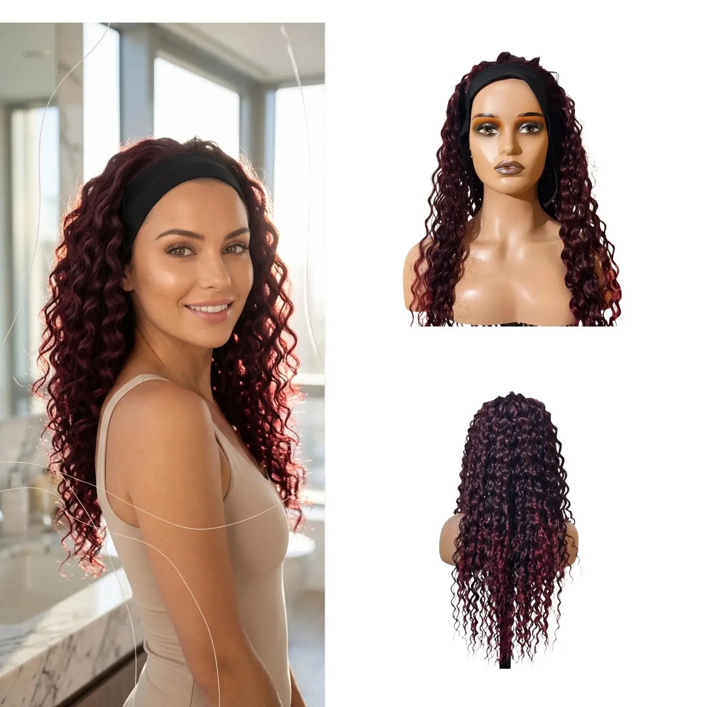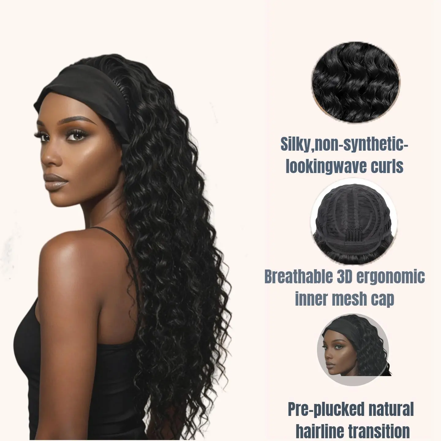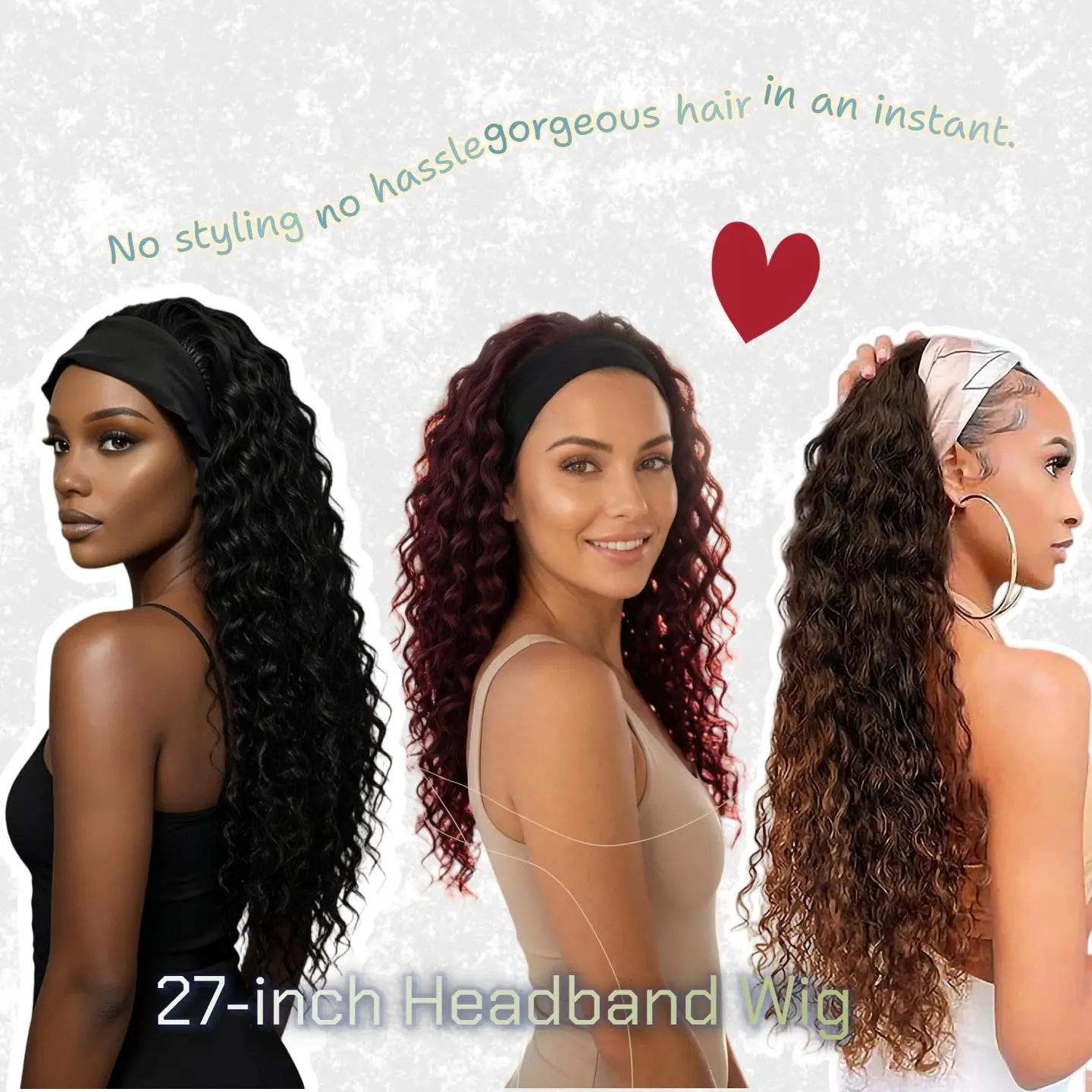 ✨ No styling, no hassle, gorgeous hair in an instant. This 27-inch Headband Wig offers a "Ready-to-Wear" style, perfect for Black women. It features a deep curl texture, giving you a luxurious look without the effort. The wig is glueless and lace-free at the front, ensuring comfort and ease of use.