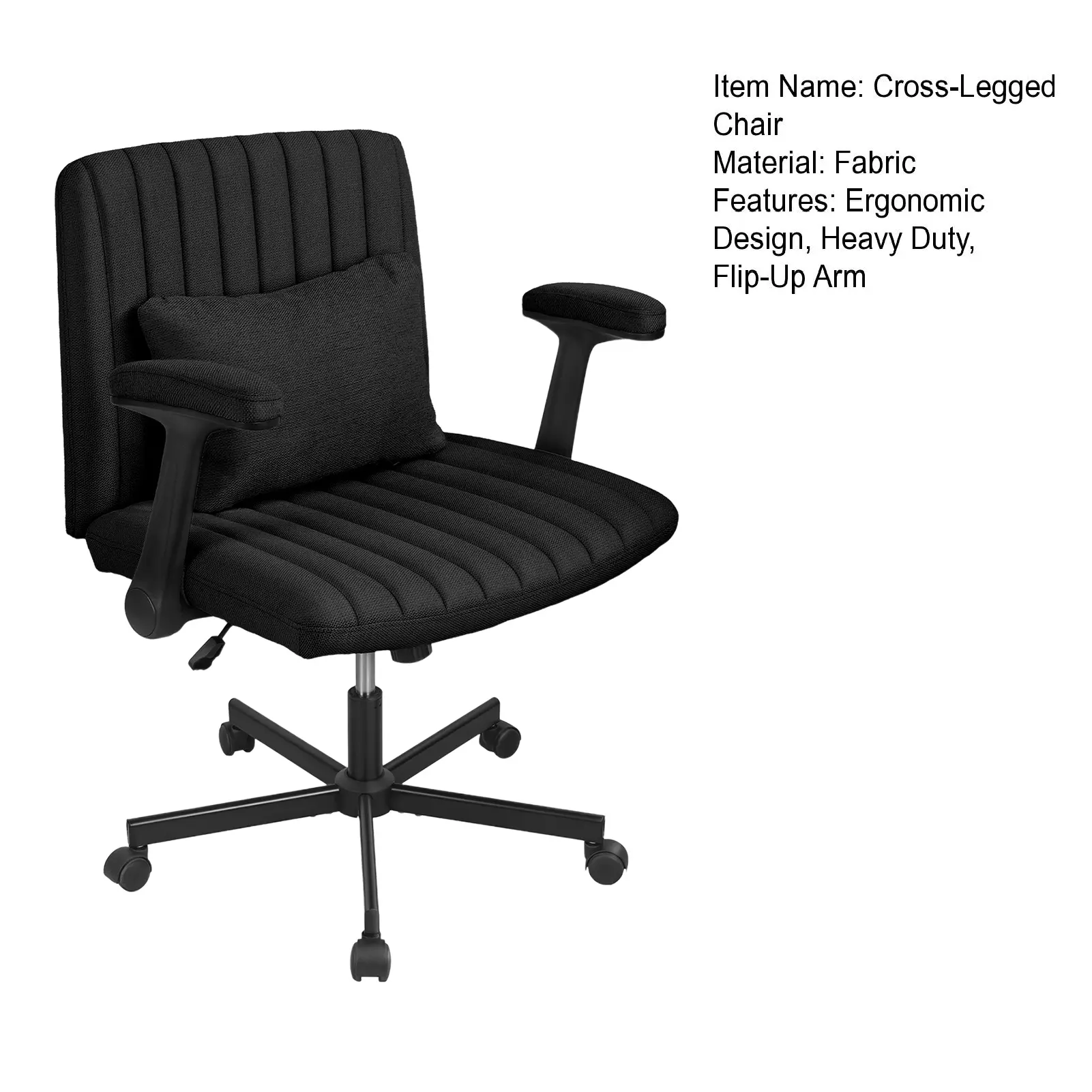 Cross-Legged Office Chair with Wheels & Adjustable Flip-Up Arm Ergonomic Design Thick Cushion Wide Seat for Home Office Apartment Comfortable Modern Upholstery