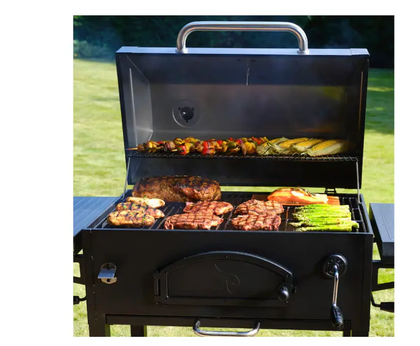 This grill is designed for those who love the classic charcoal cooking experience. The 33-inch width provides ample space for grilling a variety of foods. The black cart design adds a sleek, modern touch to your outdoor cooking setup. Perfect for gatherings and family meals, this grill is a reliable choice for all your grilling needs.