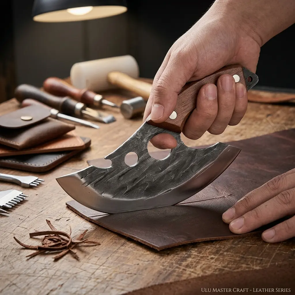 Ergonomic Chopping Hack: Use the finger hole for total control and zero hand fatigue. Hook your index finger through the hole, grip the handle with your other fingers, and rock the blade to chop herbs, veggies, and meat with minimal effort—perfect for long meal prep sessions.