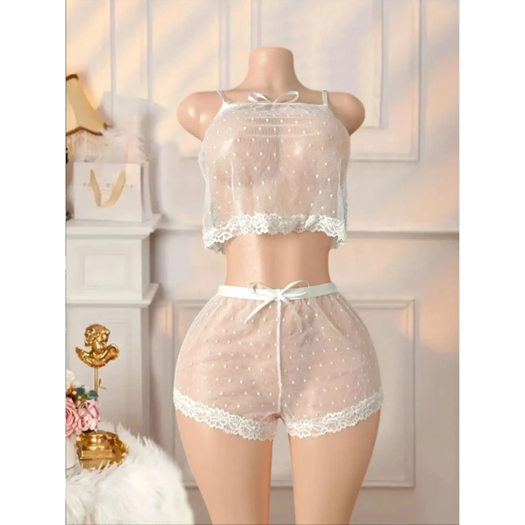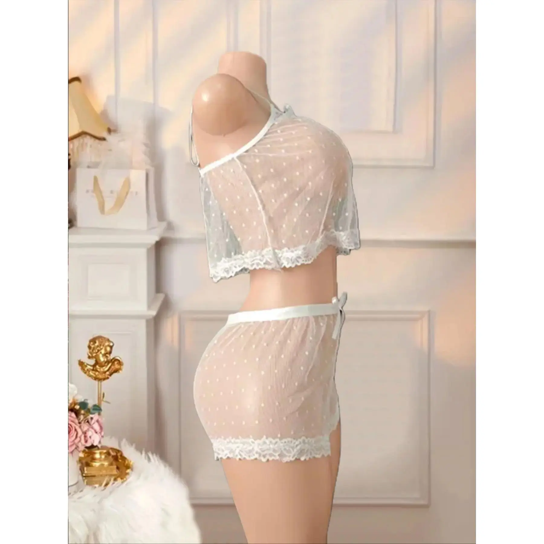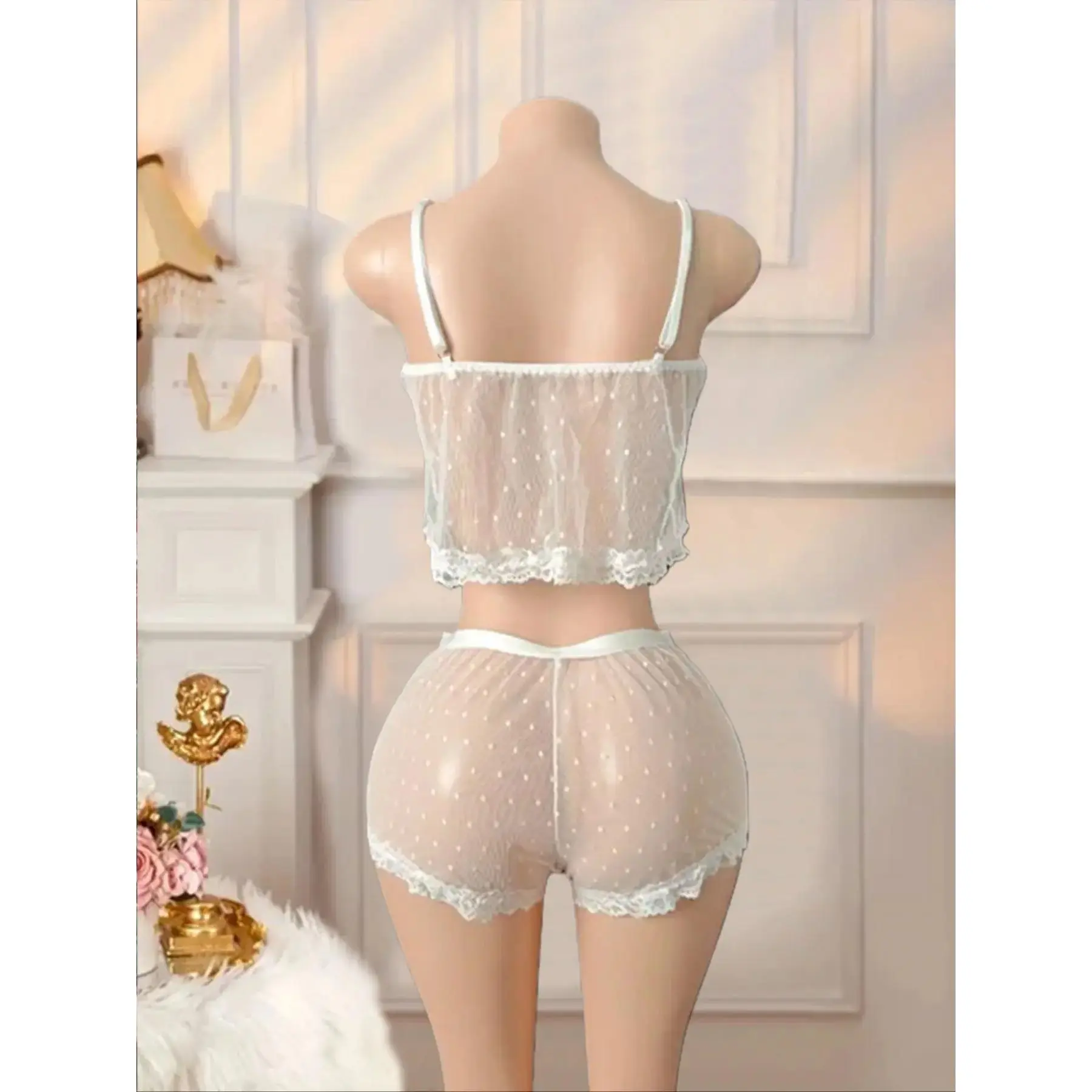Women's Sexy Lingerie Set, Polka Dot Mesh Sleepwear, Inner Layer, Fitted Design, All Seasons Wear, Plain Pattern