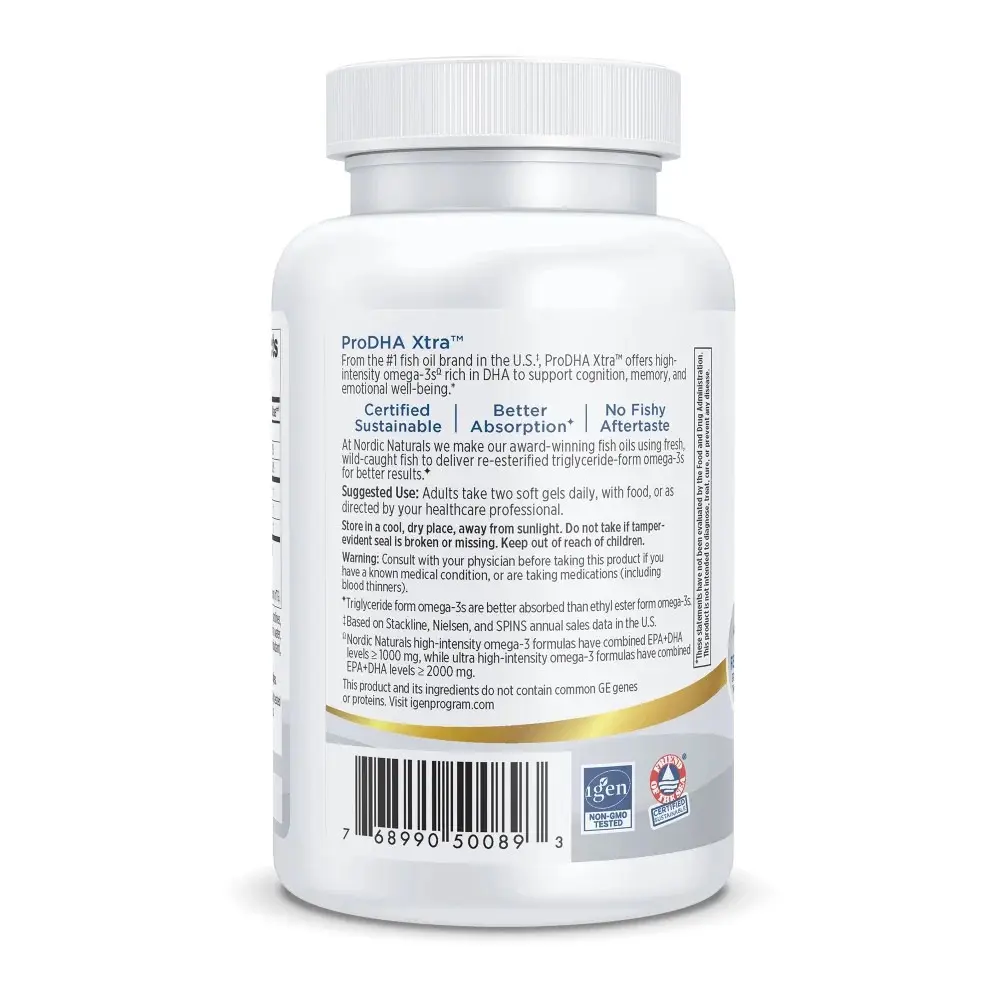 RESEARCH-PROVEN BENEFITS - Nordic Naturals ProDHA 1000 is our most potent DHA formula with almost 1000 mg of pure omega-3 DHA in a single serving, providing research-proven benefits for the eyes, brain, and mood.