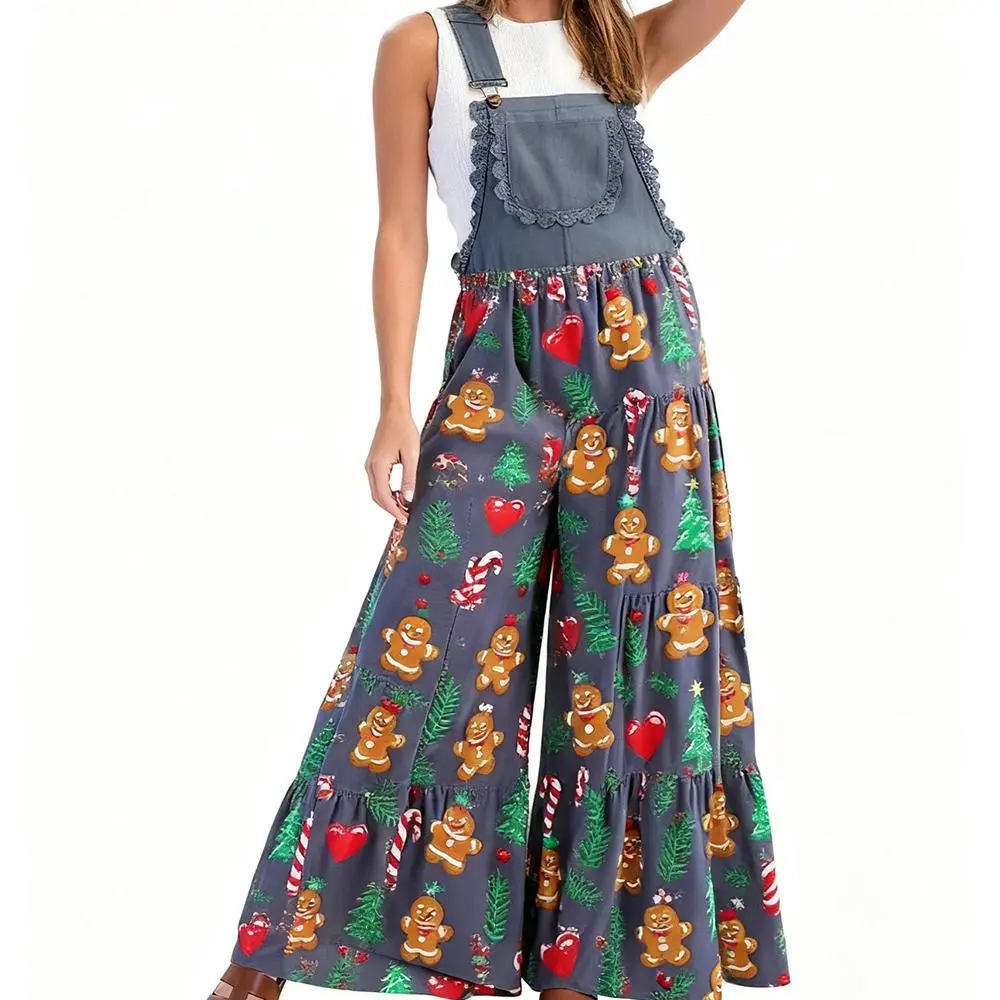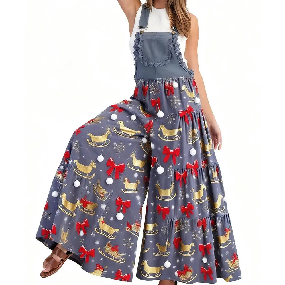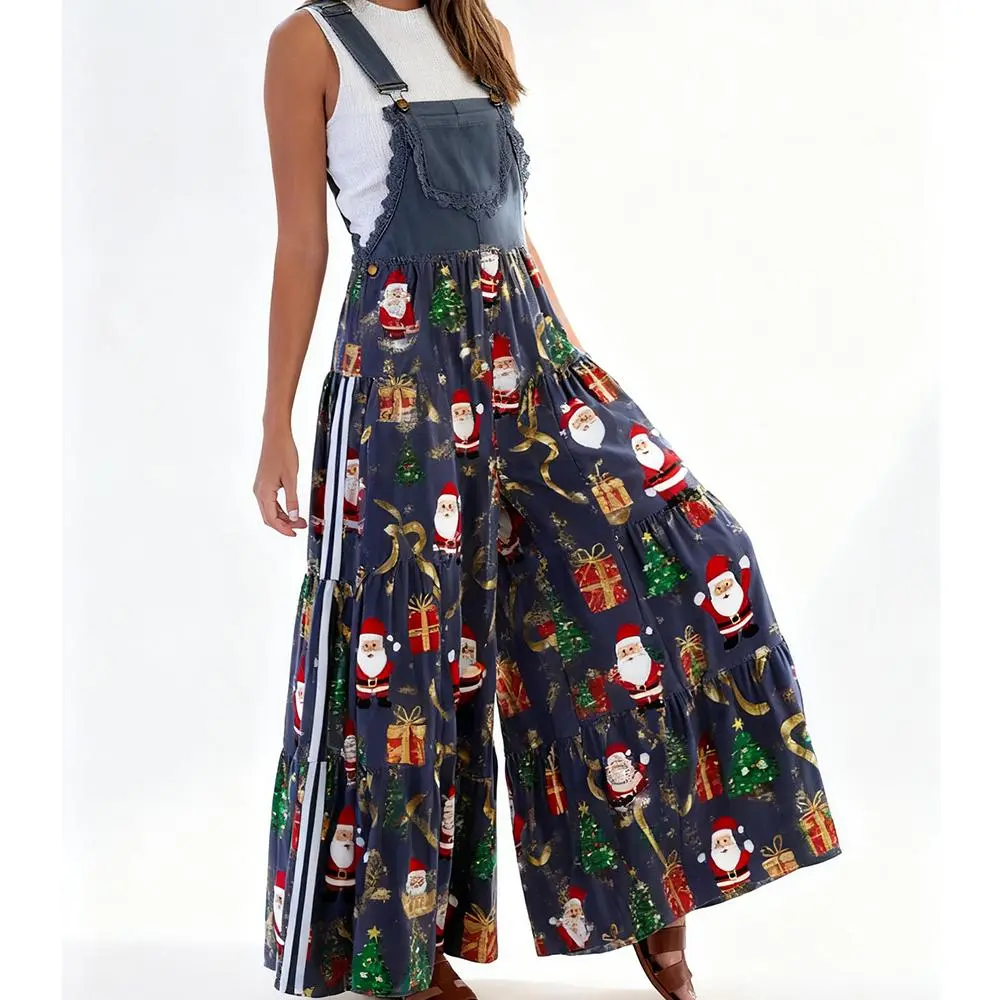 Women Christmas Jumpsuits Sleeveless Lace Patchwork Christmas Themed Print Baggy Wide Leg Overalls Size (cm): S Clothes Length: 120 Waist: 76 Hip: 124 M Clothes Length: 121 Waist: 80 Hip: 128 L Clothes Length: 122 Waist: 86 Hip: 134 Size (inch): S Clothes Length: 47.24 Waist: 29.92 Hip: 48.82 M Clothes Length: 47.64 Waist: 31.50 Hip: 50.39 L Clothes Length: 48.03 Waist: 33.86 Hip: 52.76 Specification: Materials: 95% Polyester, 5% Elastane Style: Christmas Pattern: Christmas Themed Print Color: Multicolor Package Contents 1 x Jumpsuit Note: 1. Please kindly allow a 2-3% difference according to manual measurement. 2. Please note that a slight color difference should be acceptable due to the light and screen. Thanks. Promise If the product has any quality problems, please let us know, we will help you solve the problem as quickly as possible.