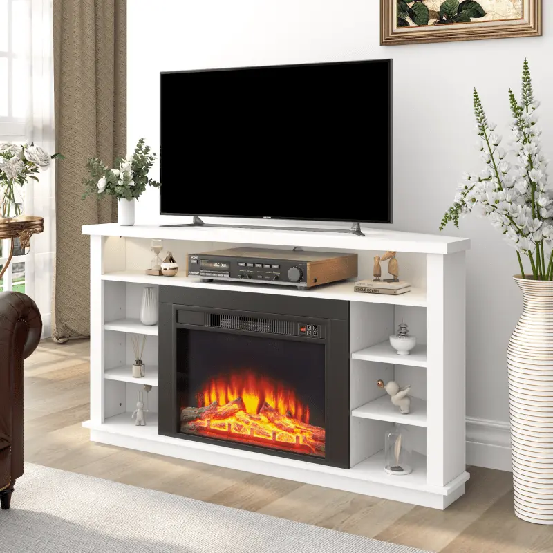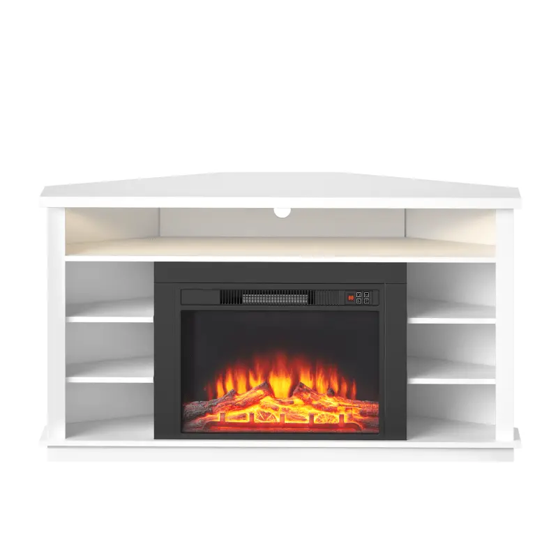 This corner electric fireplace tv stand is designed to make the most of your room layout while adding warmth and style. The half-triangle shape fits perfectly into corners, supporting TVs up to 55" with a strong 175-lb load capacity. The built-in 23" electric fireplace offers 750W/1500W heating, 62–82°F temperature control, 3 flame levels, a safe overheat-protection system, and a 1-8 hour timer—great for cozy evenings.