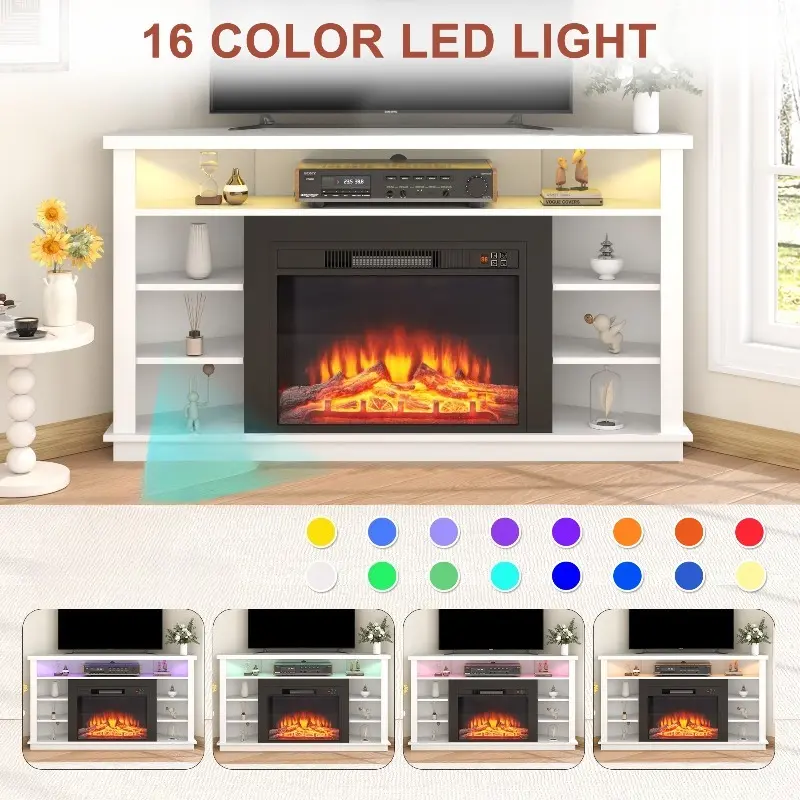 Corner Design for 55" TVs: This corner fireplace tv stand is built with a smart half-triangle shape (53"×17.5"×29.5") to fit perfectly into unused corners while keeping your room spacious. The sturdy top supports up to 175 lbs, ideal for TVs up to 55".