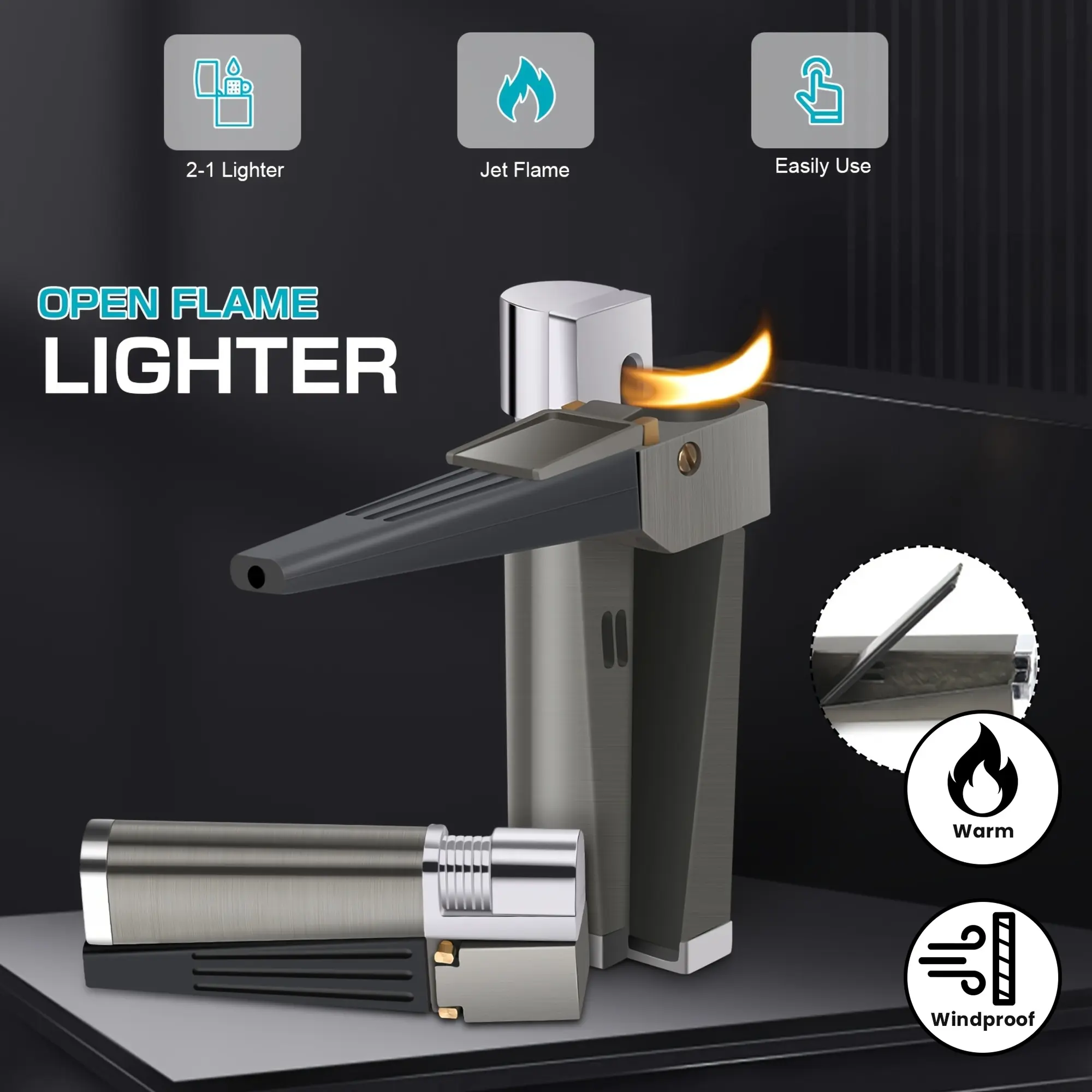 (Butane gas NOT Included) Dual-Function Metal Lighter, Refillable Lighter, Ideal Gift for Men-Father's Day Gift foldable