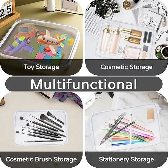 Stackable hard clear zipper cases are great for keeping small items sorted and easy to find.Perfect for small toys, building blocks, puzzles, game pieces, stationery, toothbrush, toothpaste, shampoo, conditioners, soap, cosmetics, crafts, beads, coins, earplugs, safety pins, jewelry, and watch parts.