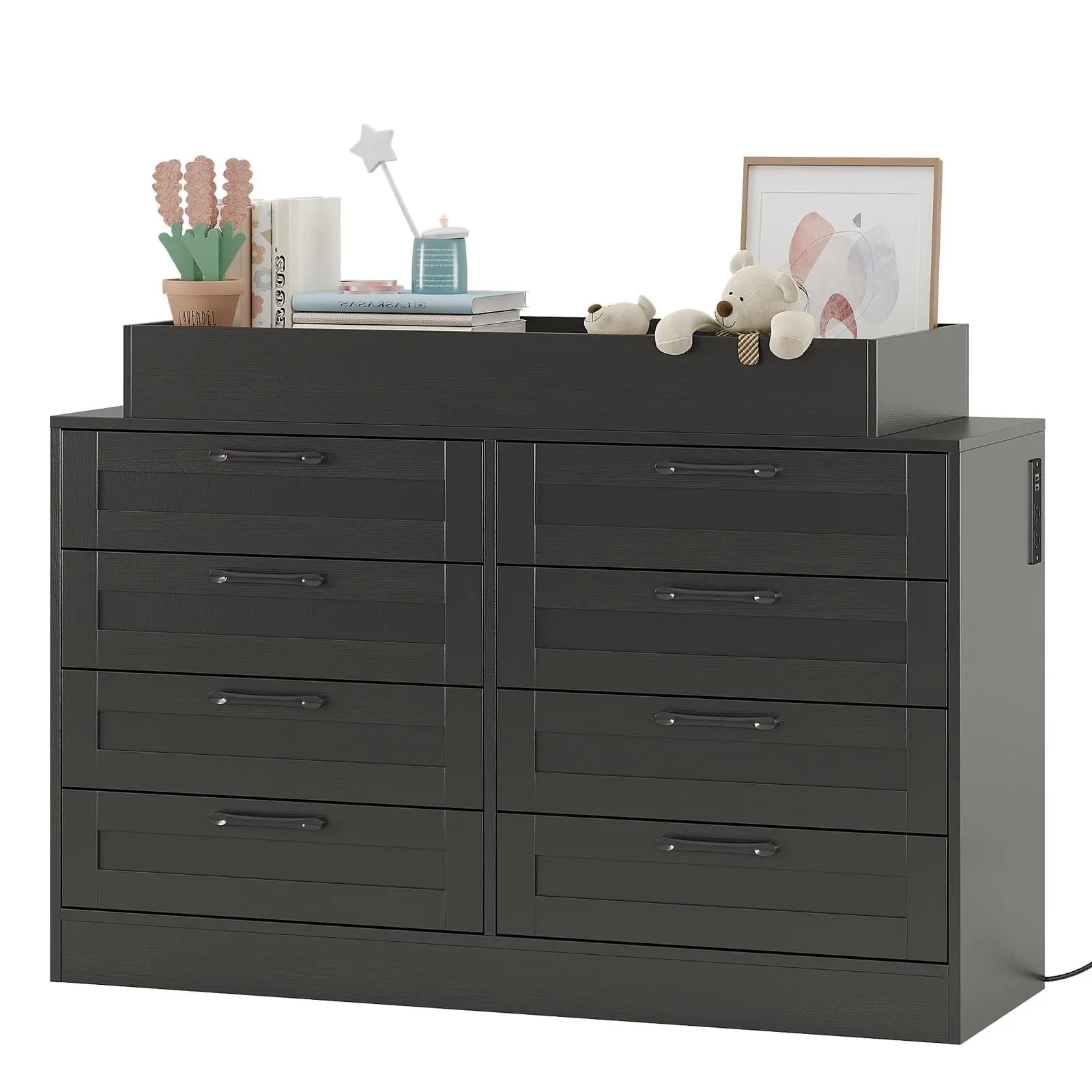 Generous Storage, Well Organized:Features 8 large drawers and open shelves to store clothing, daily essentials, and more—keeping everything tidy and accessible.
