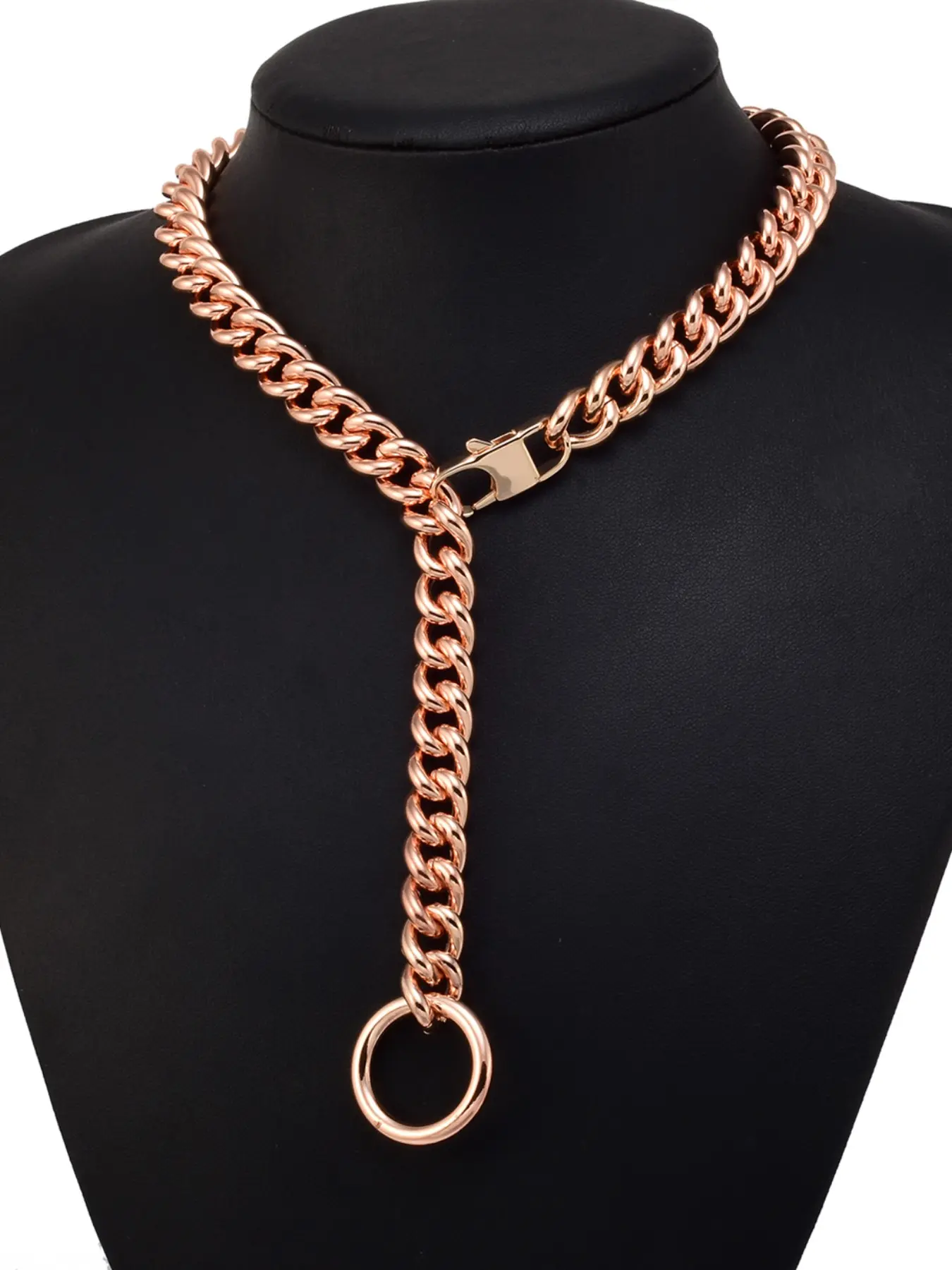 18k Rose Gold Stainless Steel Cuban Chain Necklace, Waterproof Rustproof Allergy-Free Street Style Choker, Unisex Valentine's Day Gift