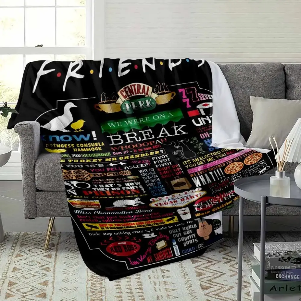 Friends TV Show Quotes Flannel Throw Blanket, Central Perk Iconic Print Soft Warm Fuzzy Fleece, Unagi Lobster We Were On A Break, Lightweight Plush for Sofa Bed Couch, Funny Birthday Christmas Gift for Fans