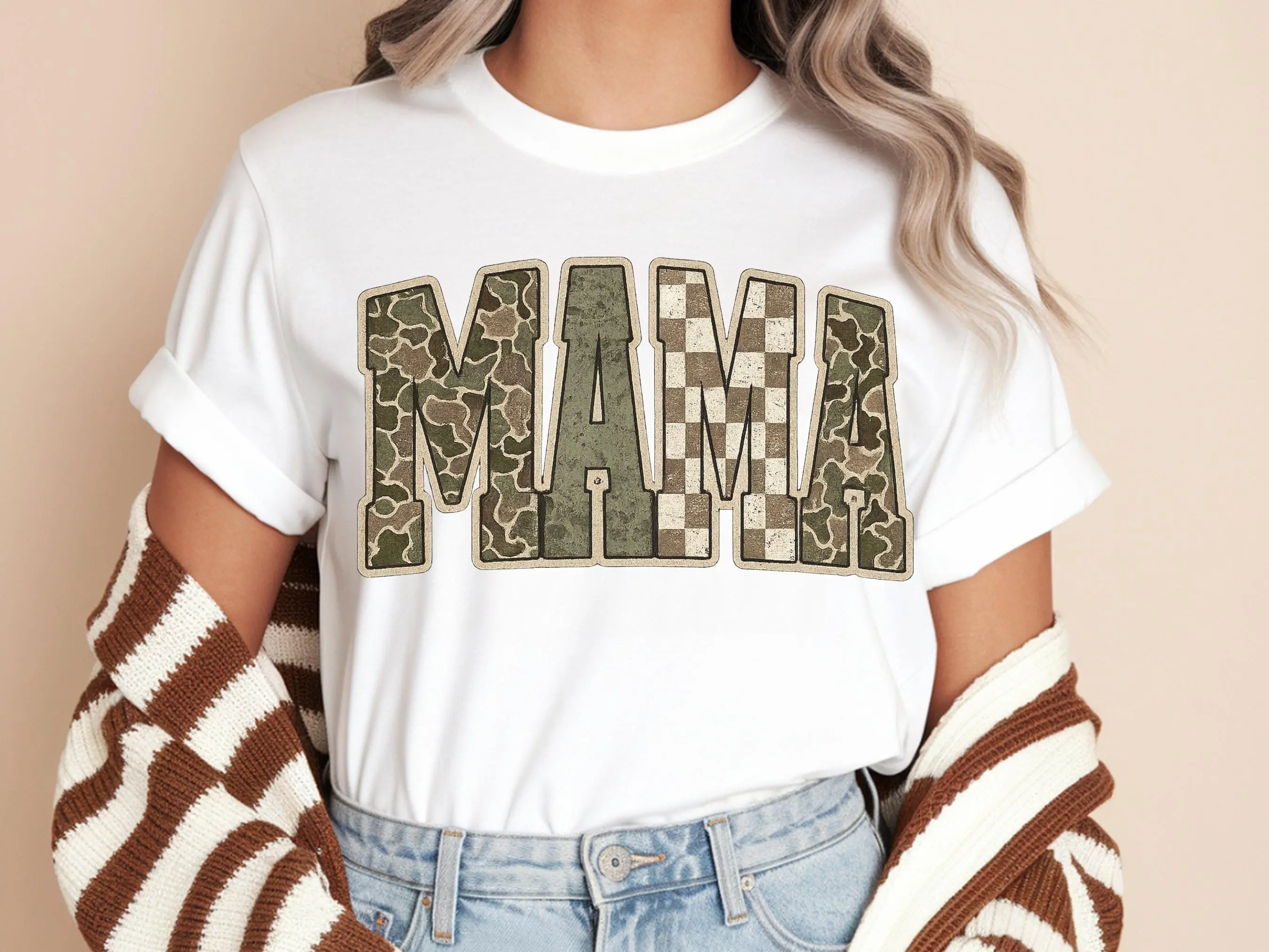 Camo Mama Comfort Colors Shirt Trendy Camo Mama Tee Military Mom Shirt Cute Mom Life T-shirt Boho Checkered Camo Shirt Gift Gift For Mom