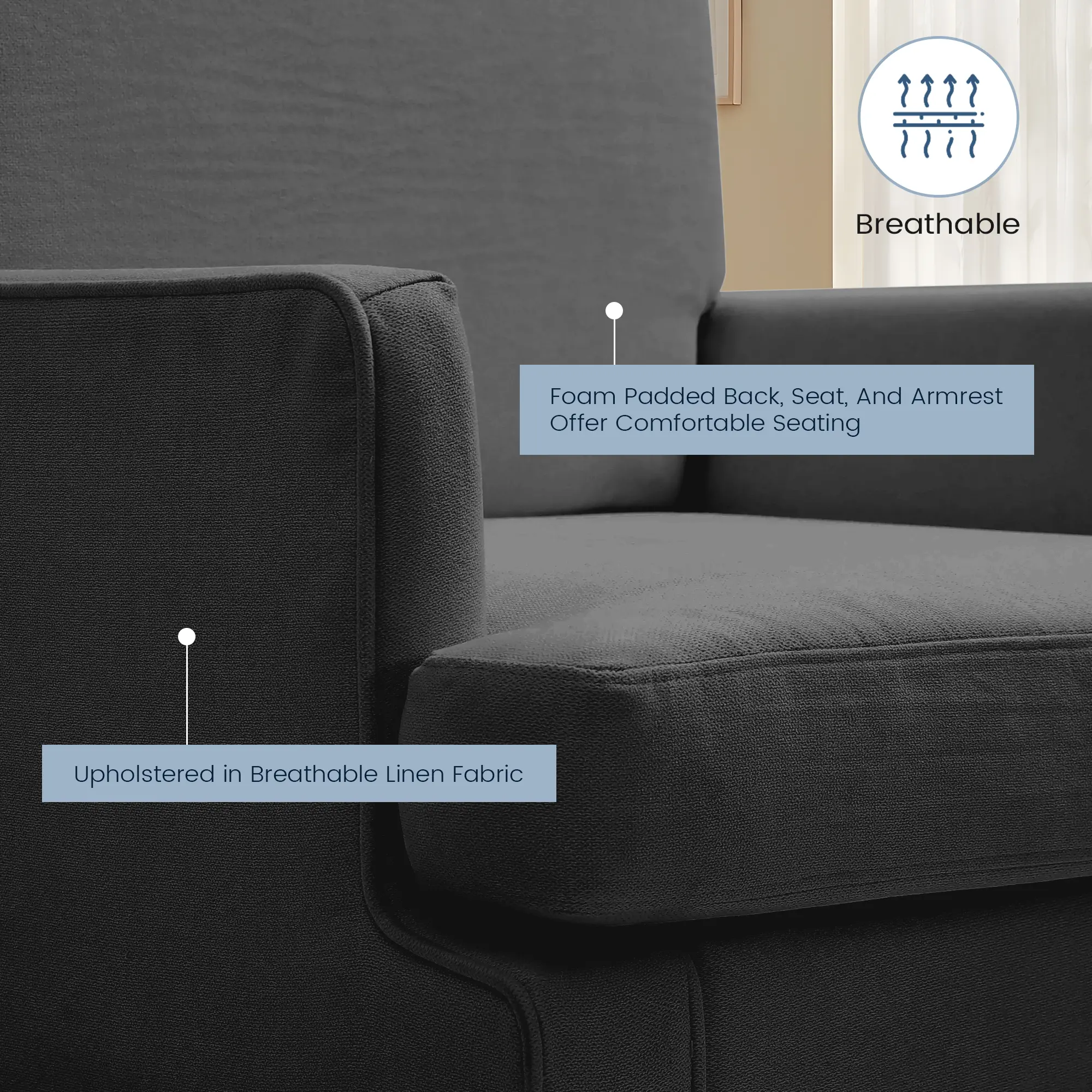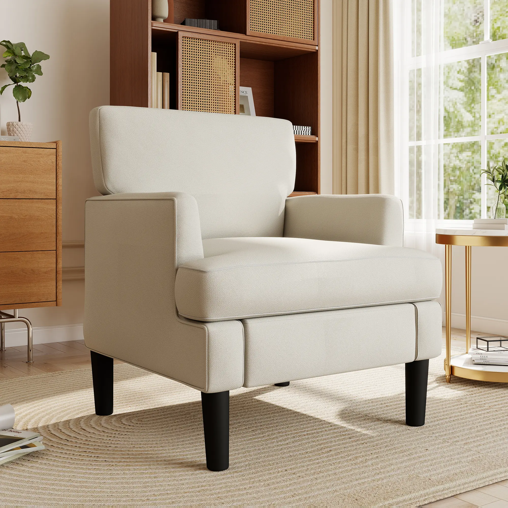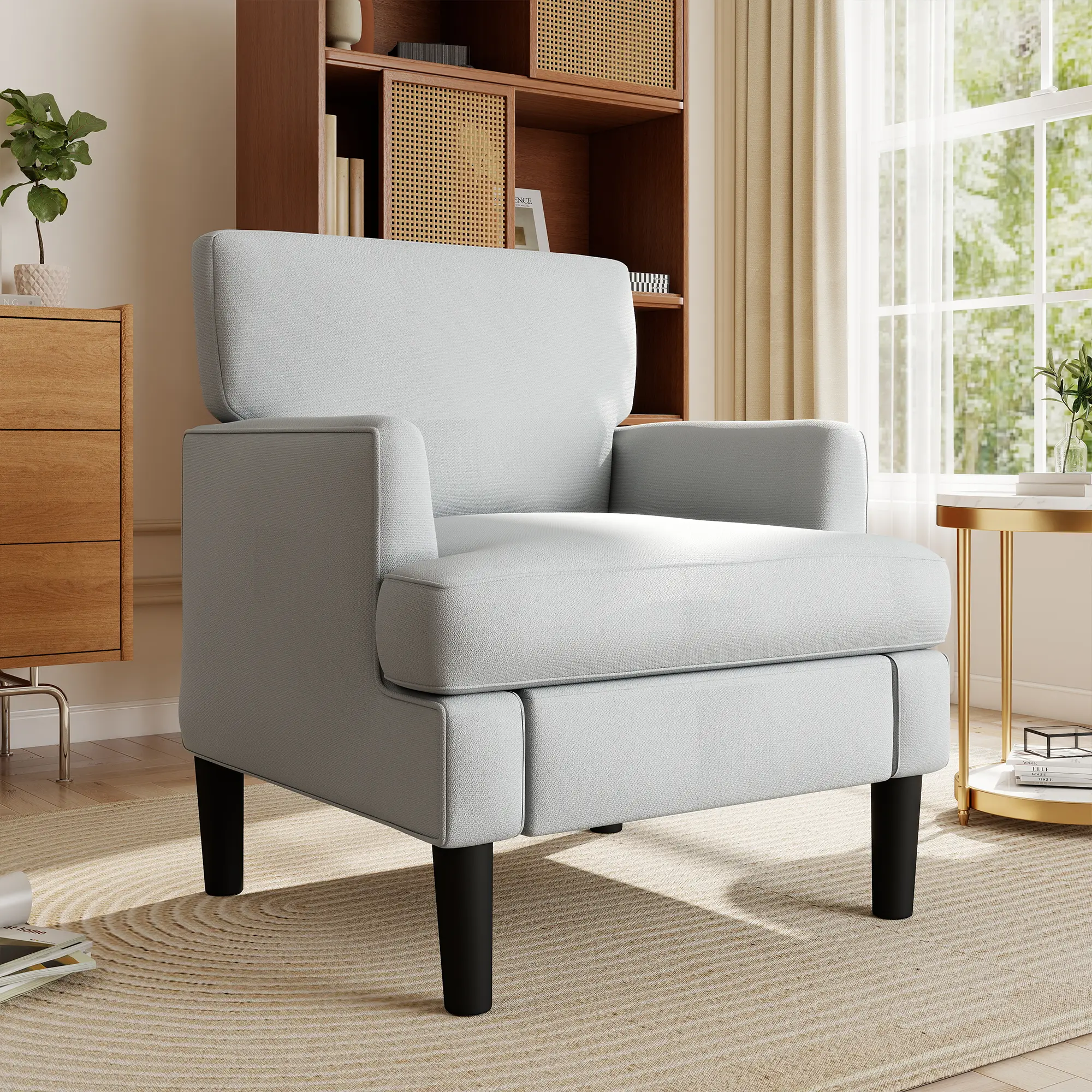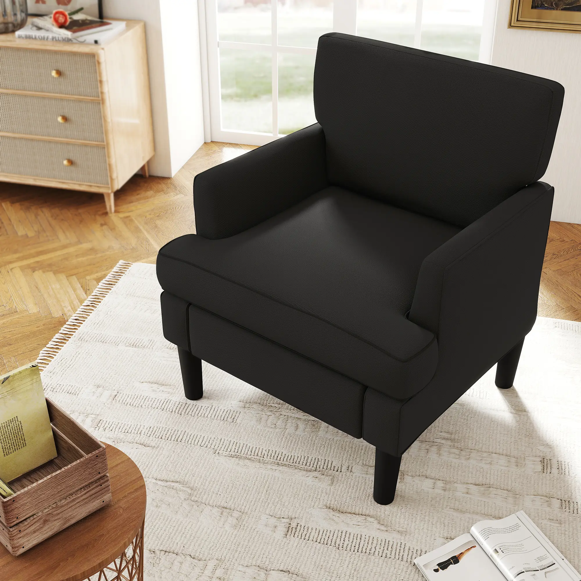 This accent chair combines clean modern looks with classic mid-century style, instantly upgrading the atmosphere of any room. Its adaptable design works well with both modern and traditional interiors, making it perfect for bedroom corners, city apartments, home offices, or comfortable reading areas.