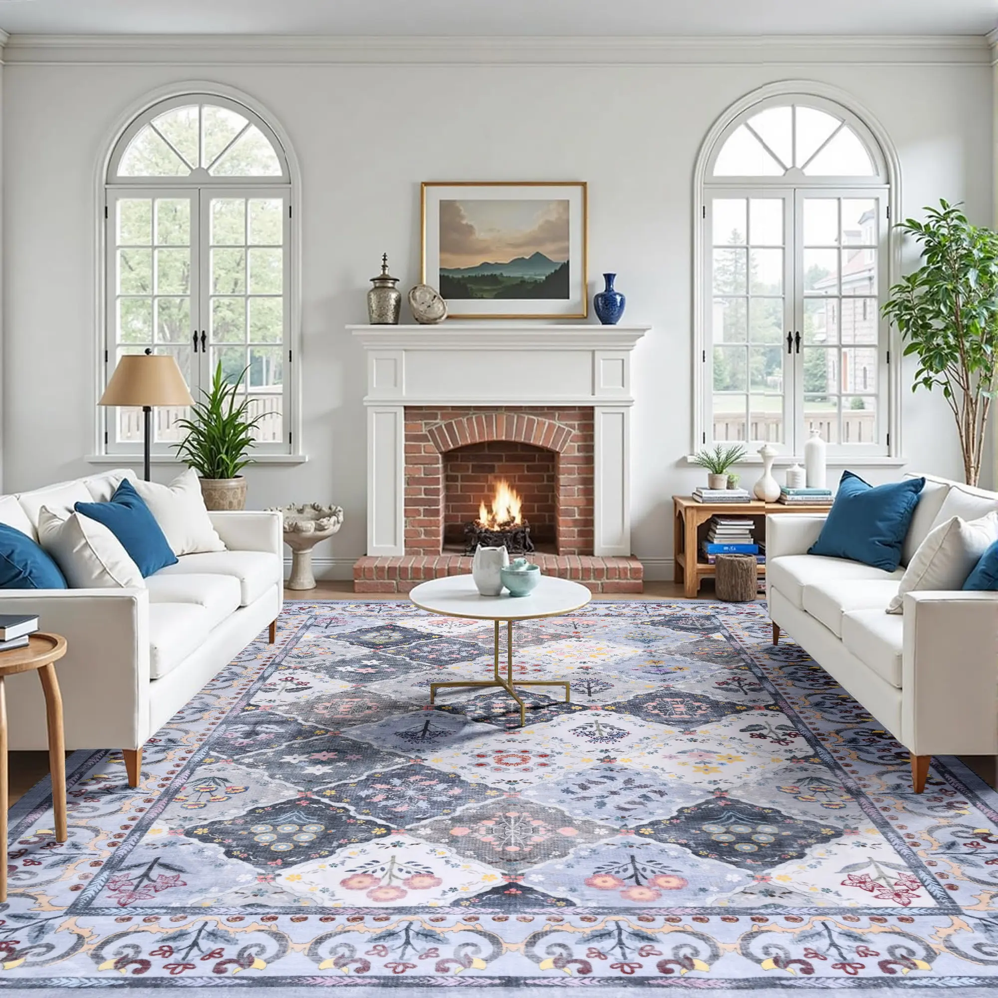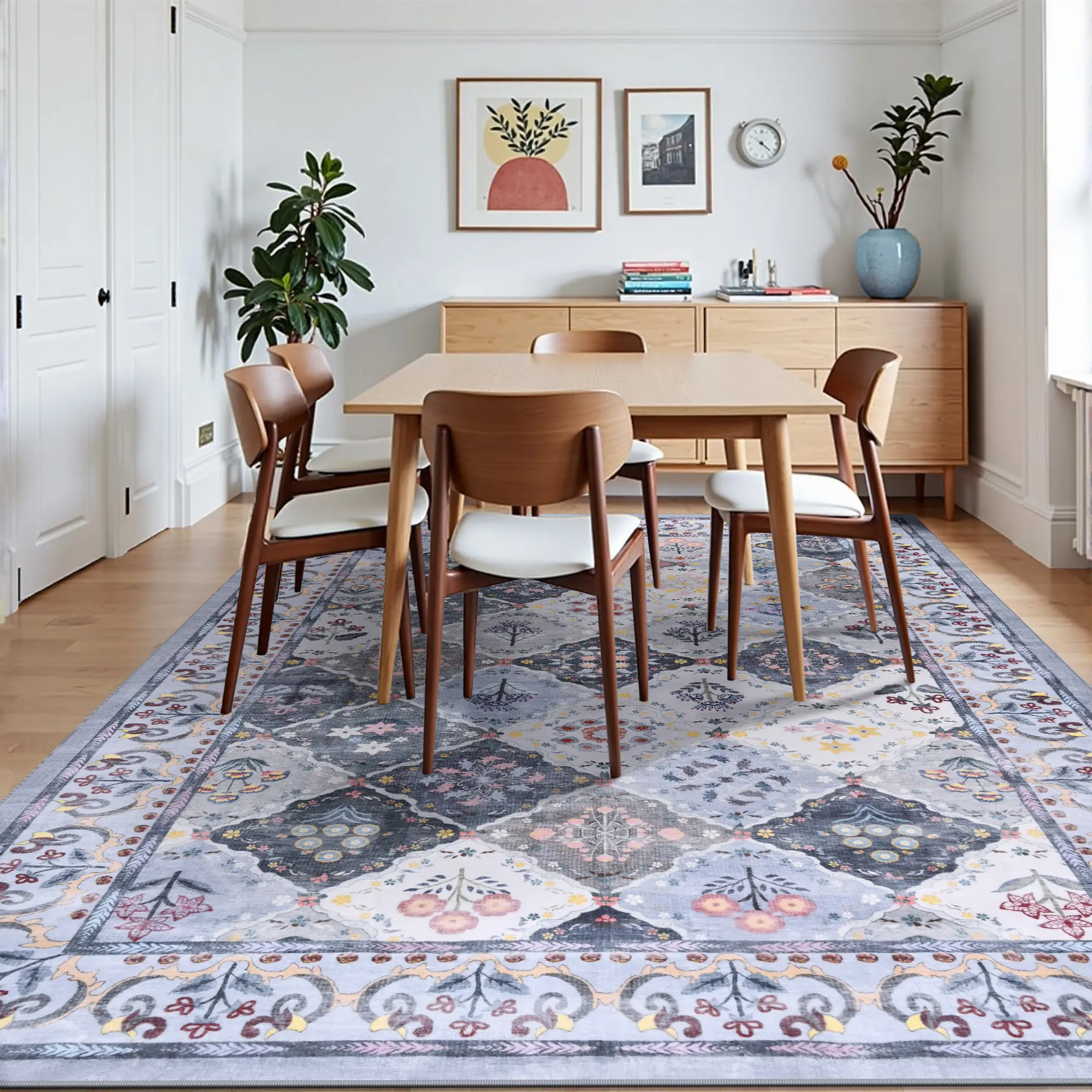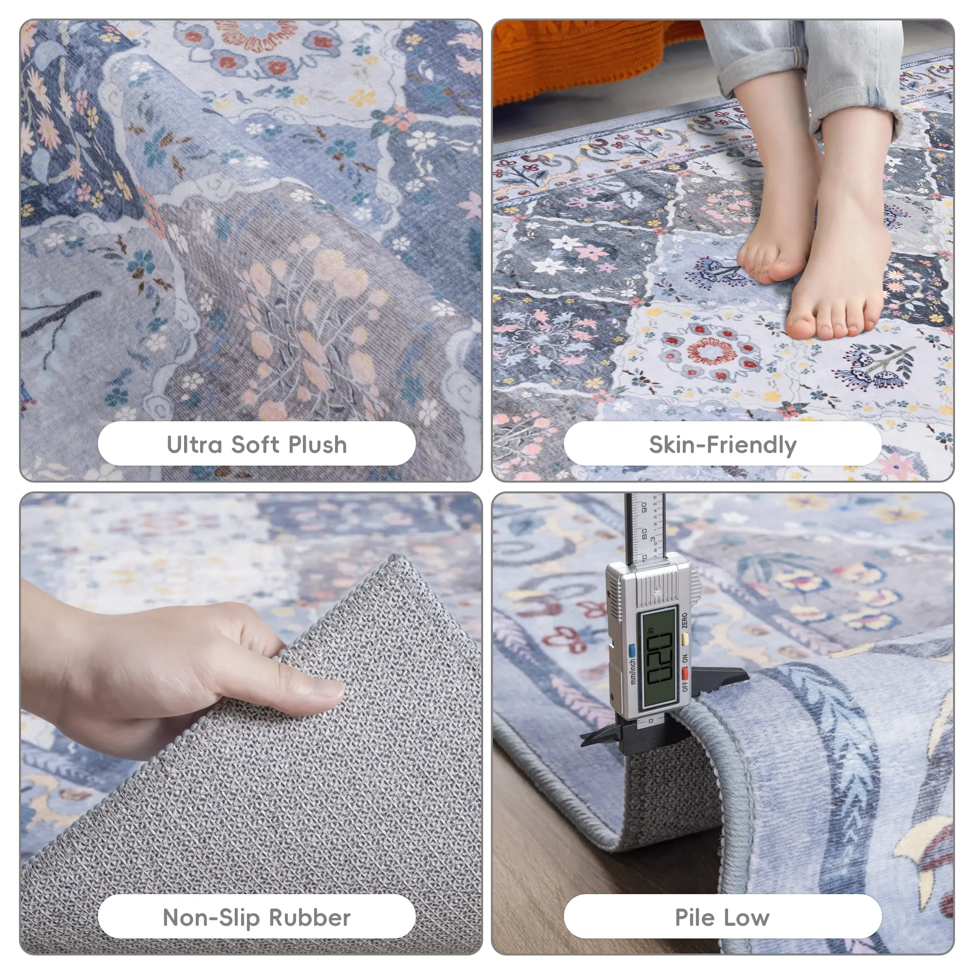 Beautiful Ultra-Soft Design Rug: The area rug is made from a soft material ,washable floral vintage rug is comfortable to tread on with bare feet and comes in rich..It has strong toughness, not shed, not fade and no smell, this large area rug allows for convenient placement underneath furniture or high traffic areas: Living room rug, Bedroom rug, Dining room rug.