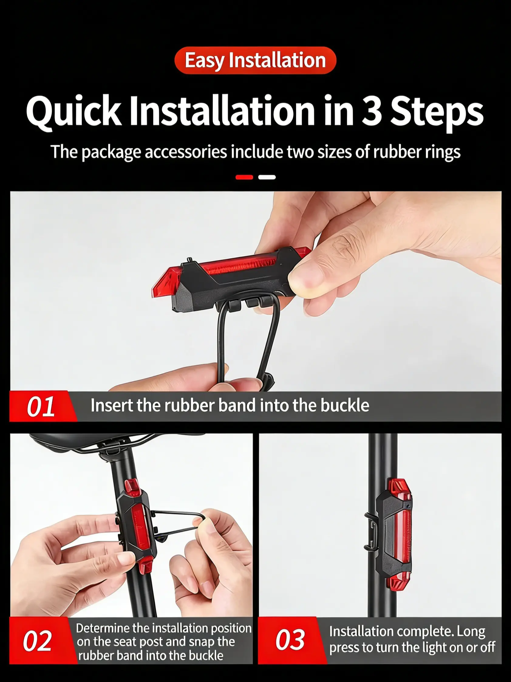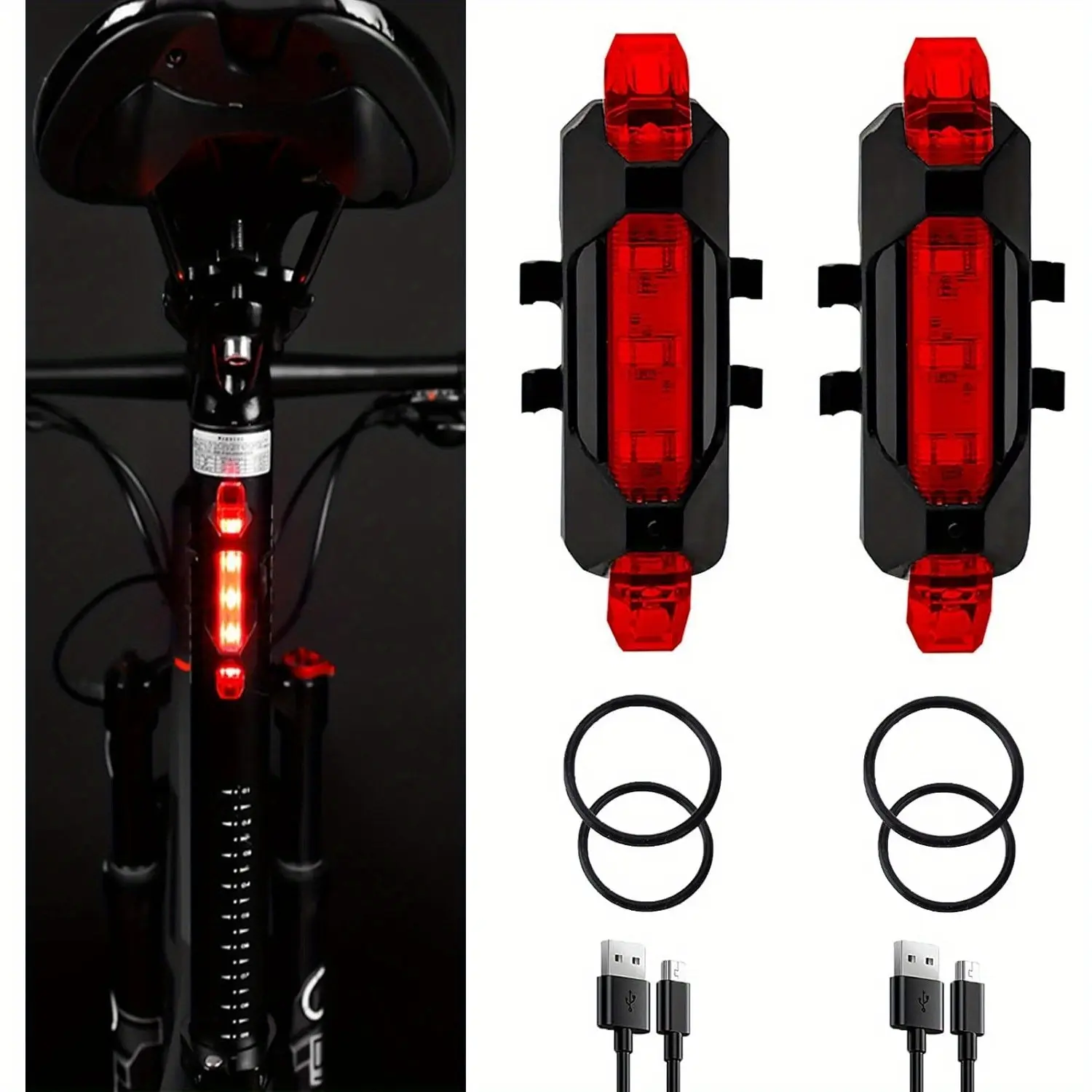 Two LED bicycle taillights, USB charging monochrome (red/color) taillights, easy to install, suitable for mountain bikes and road bikes