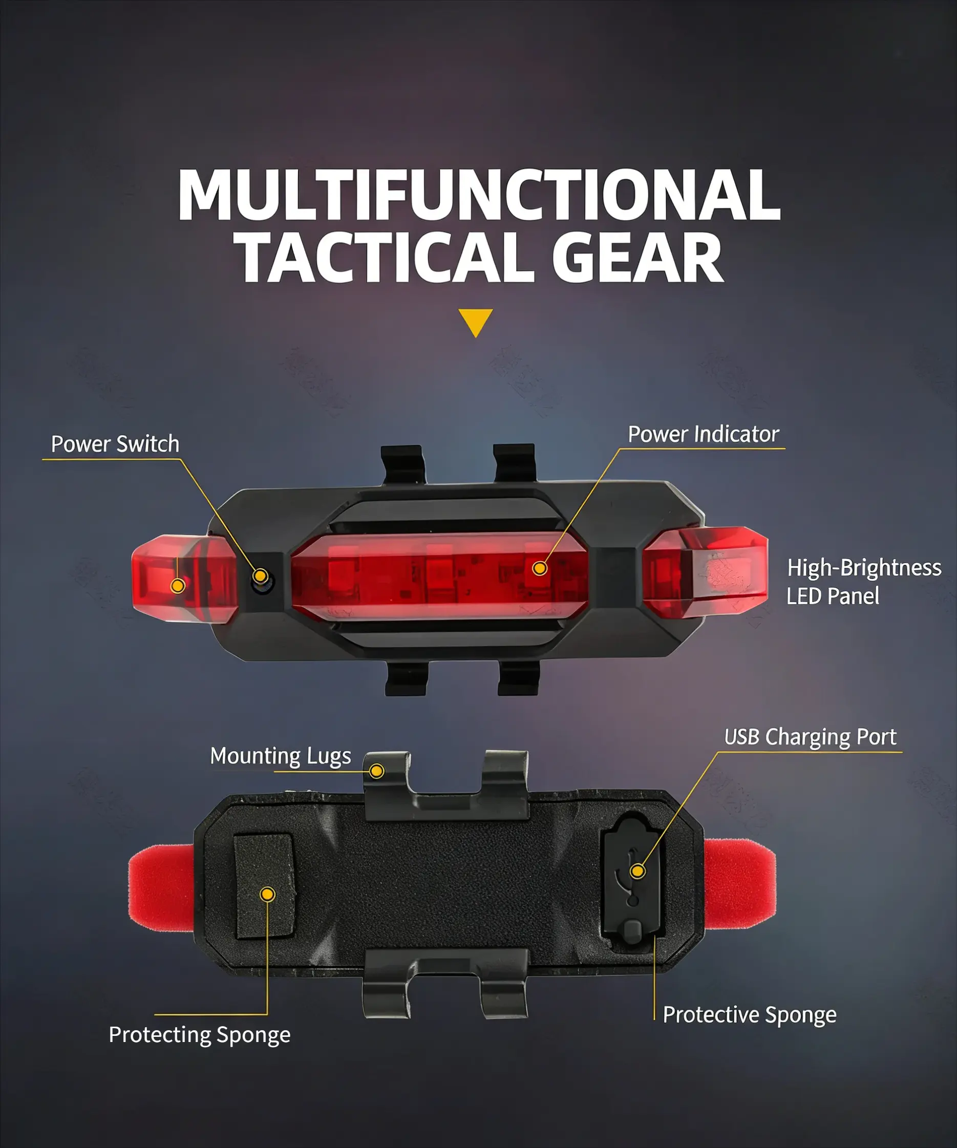 DIBMS Solar Bicycle Light, Bike Tail Light with 5 Lighting Modes, USB Rechargeable Bicycle Brake Taillights For Road, Mountain, Night Riding