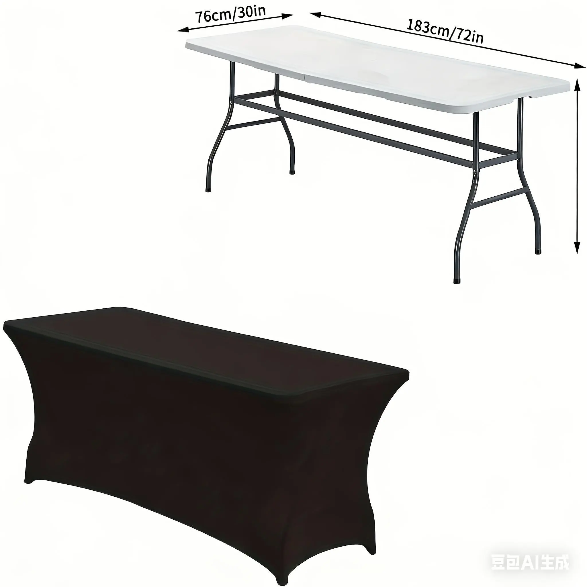 Size: 6 ft, fits most standard 6-ft tables, easy to cover and secure.