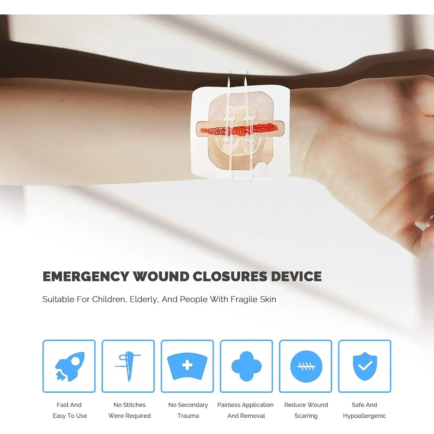 [Outdoor Emergency Essential]A lightweight, sterile solution for hikers and campers.This compact wound closure device fits in any pocket, allowing you to treat unexpected accidents immediately in remote locations where hospital care isn't accessible