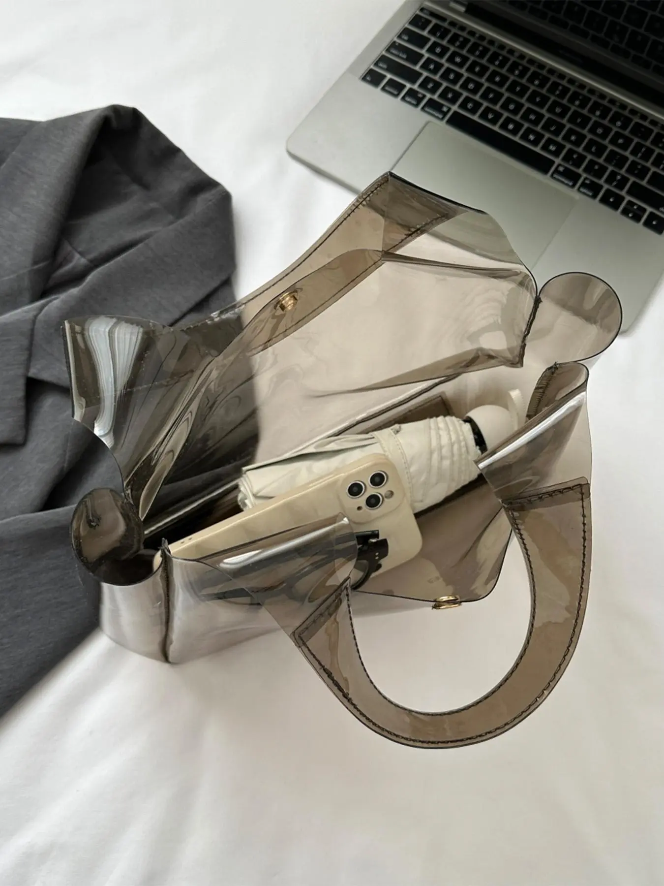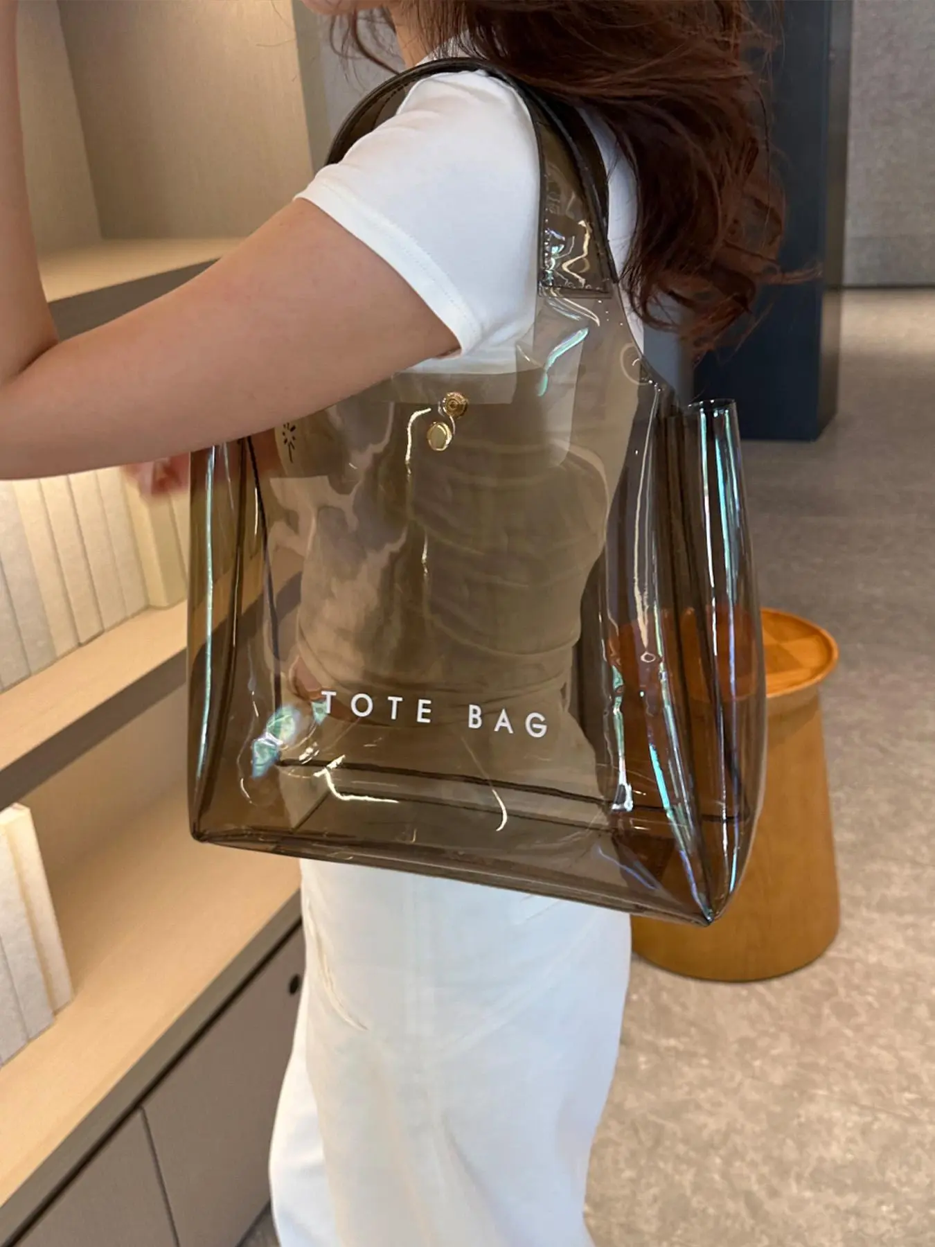 Minimalist Multi Color Transparent PVC Tote Bag For Women Waterproof Stain Resistant Daily Commute Shopping Versatile Fashion Shoulder Bag