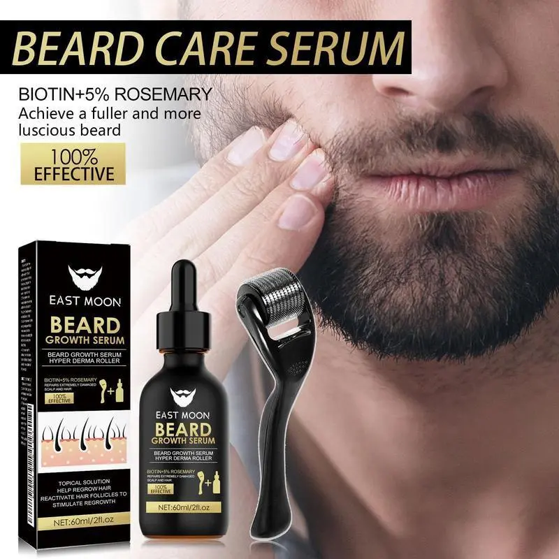 Beard Growth Serum & Massage Derma Roller Elevate your beard care routine with our Beard Growth Serum & Beard Massage Derma Roller. This set includes a nutritional oil designed to make beards thicker and more shiny.Perfect for men seeking daily beard care products and tools.