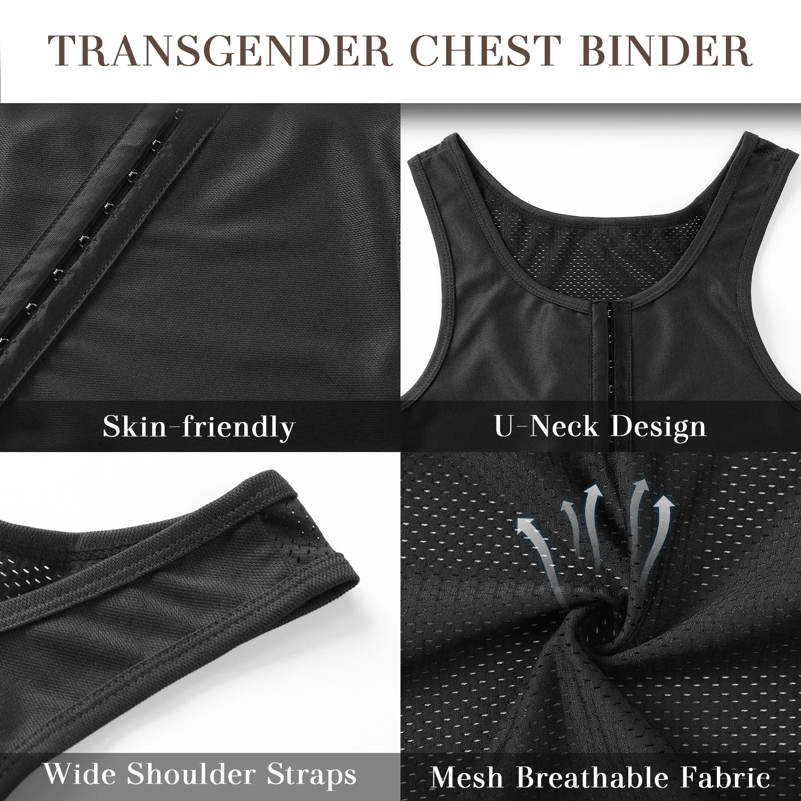 This Chest Binder is designed for women, transgender, and tomboy styles. It features a mesh front and a hooked design, making it a versatile shapewear piece. Ideal for those seeking a comfortable and stylish binder. 🌟