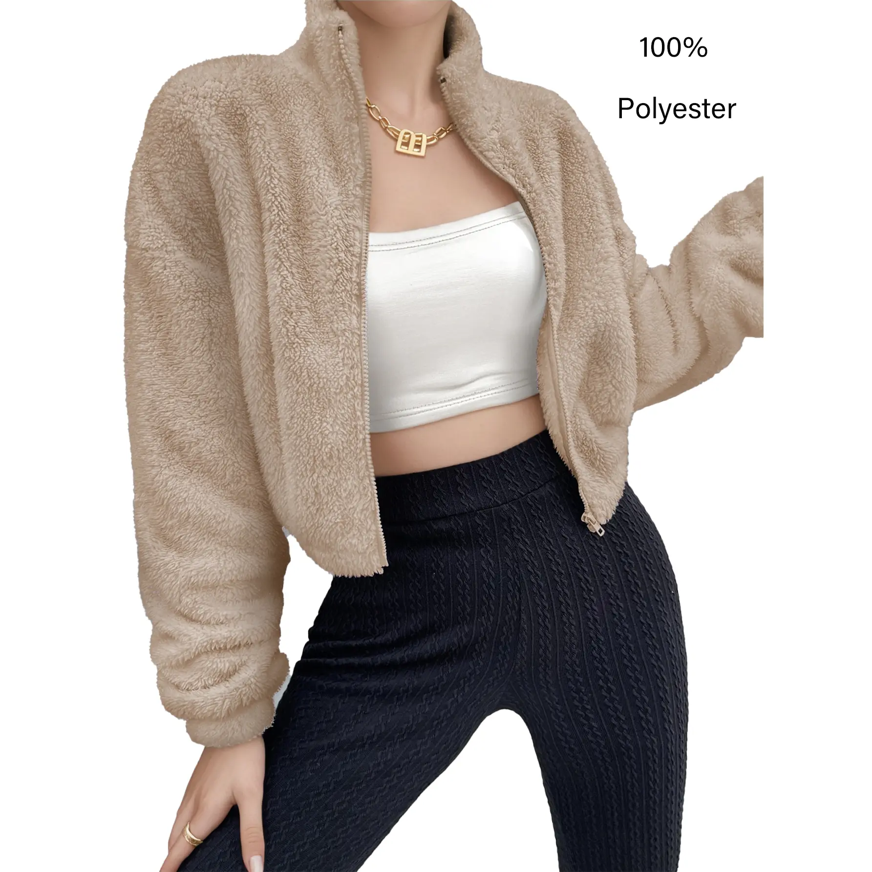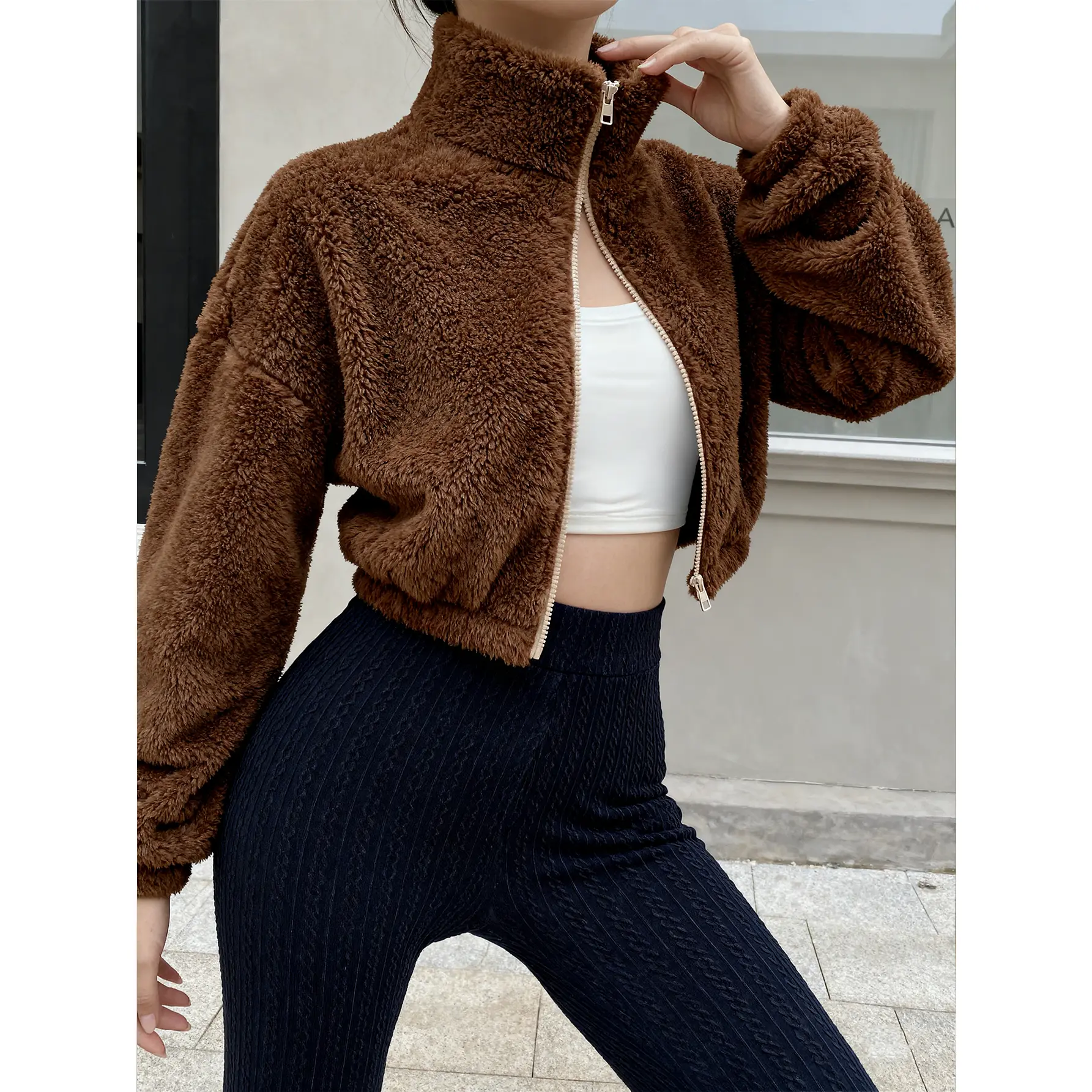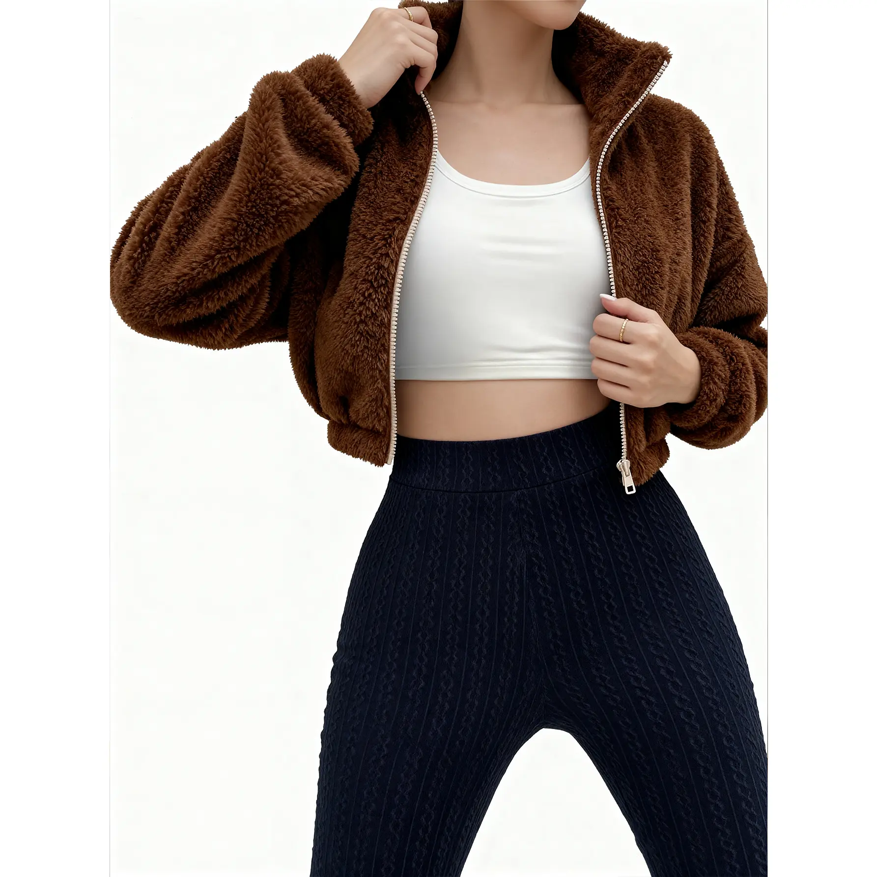 New Spring Women's Jacket, High Neck Zipper Cardigan, Plush Coat