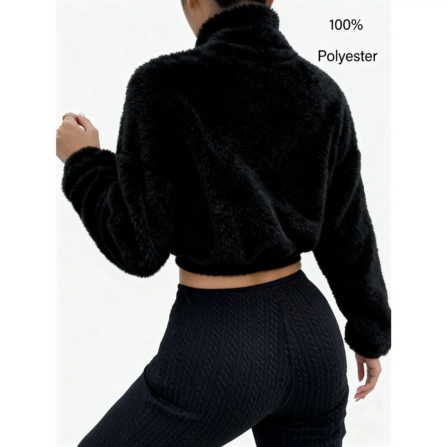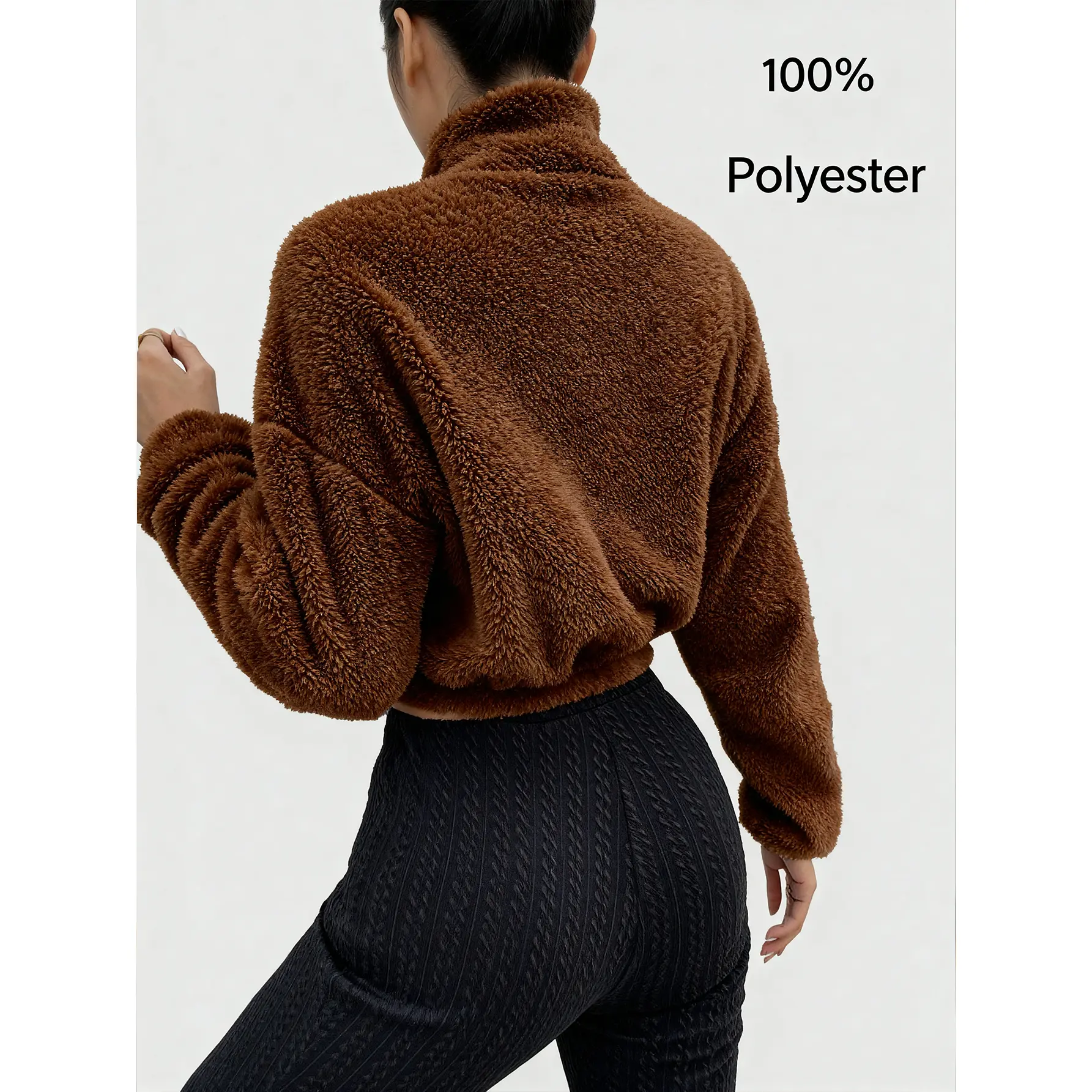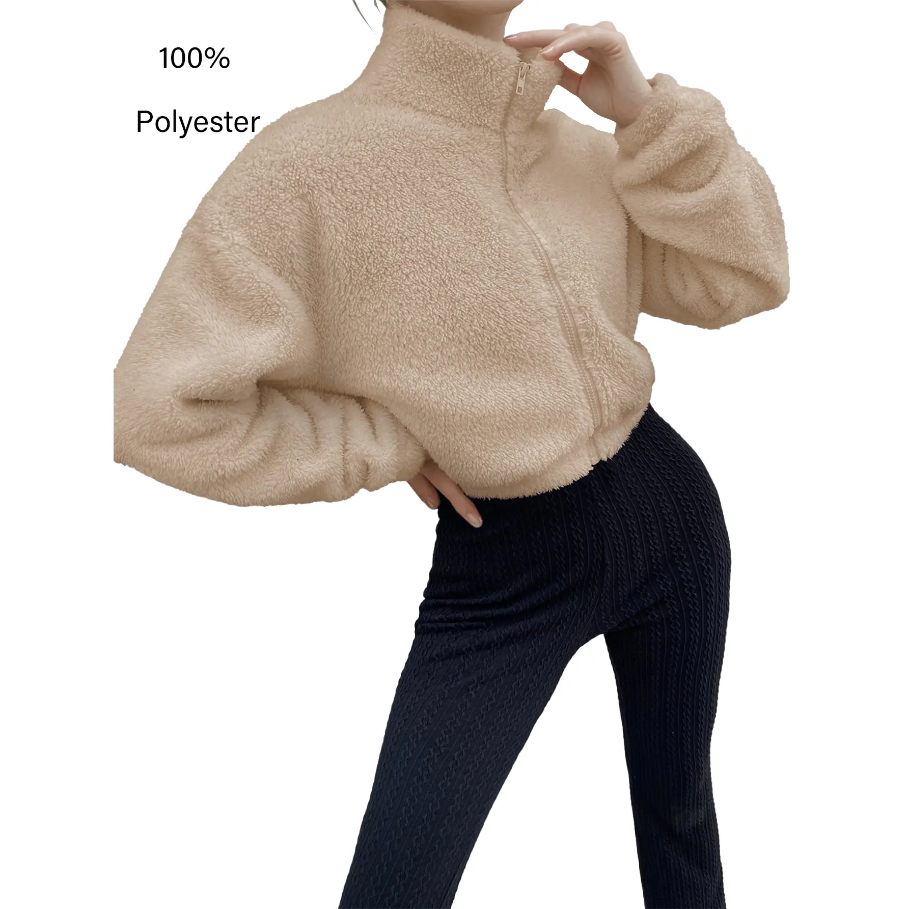 New Spring Women's Jacket, High Neck Zipper Cardigan, Plush Coat