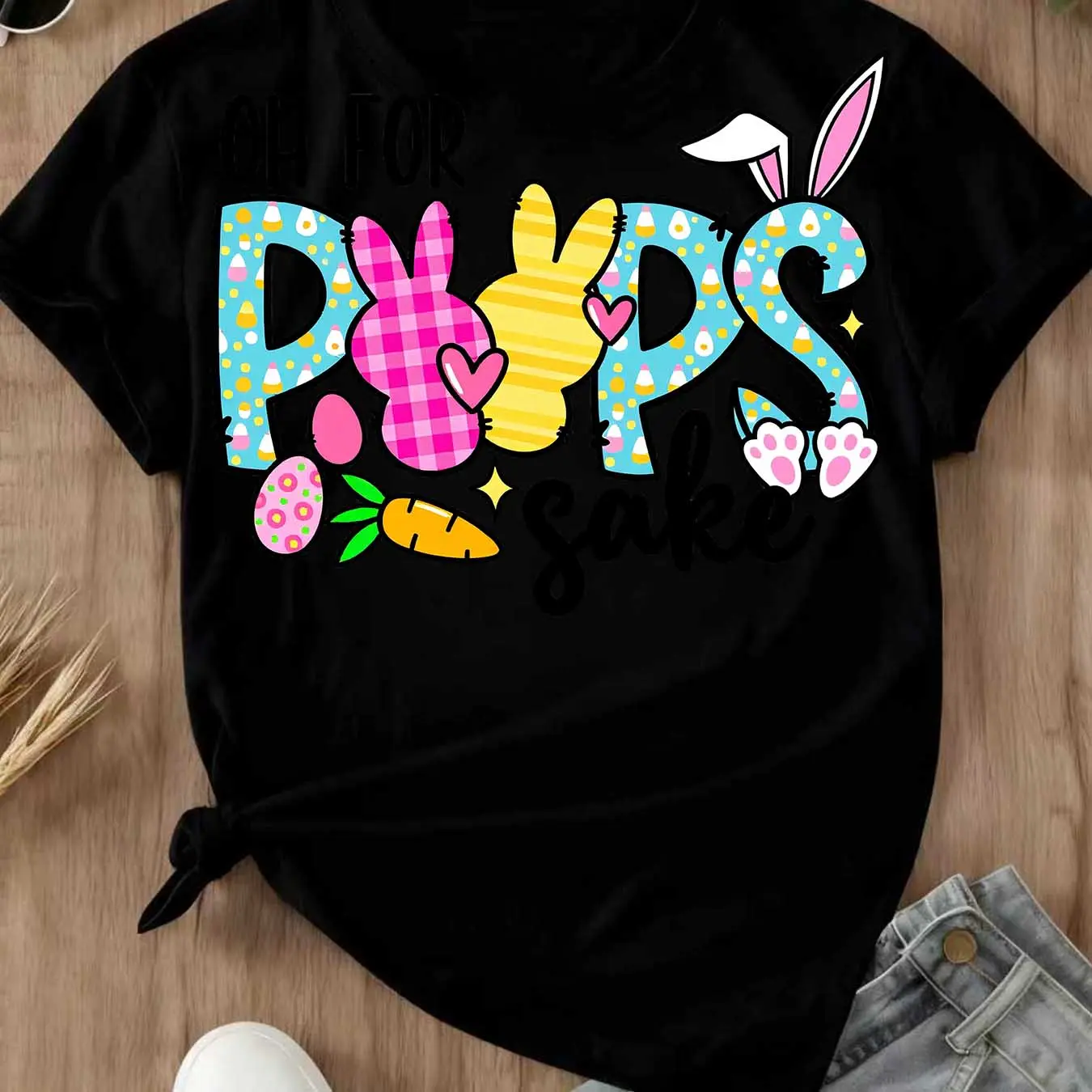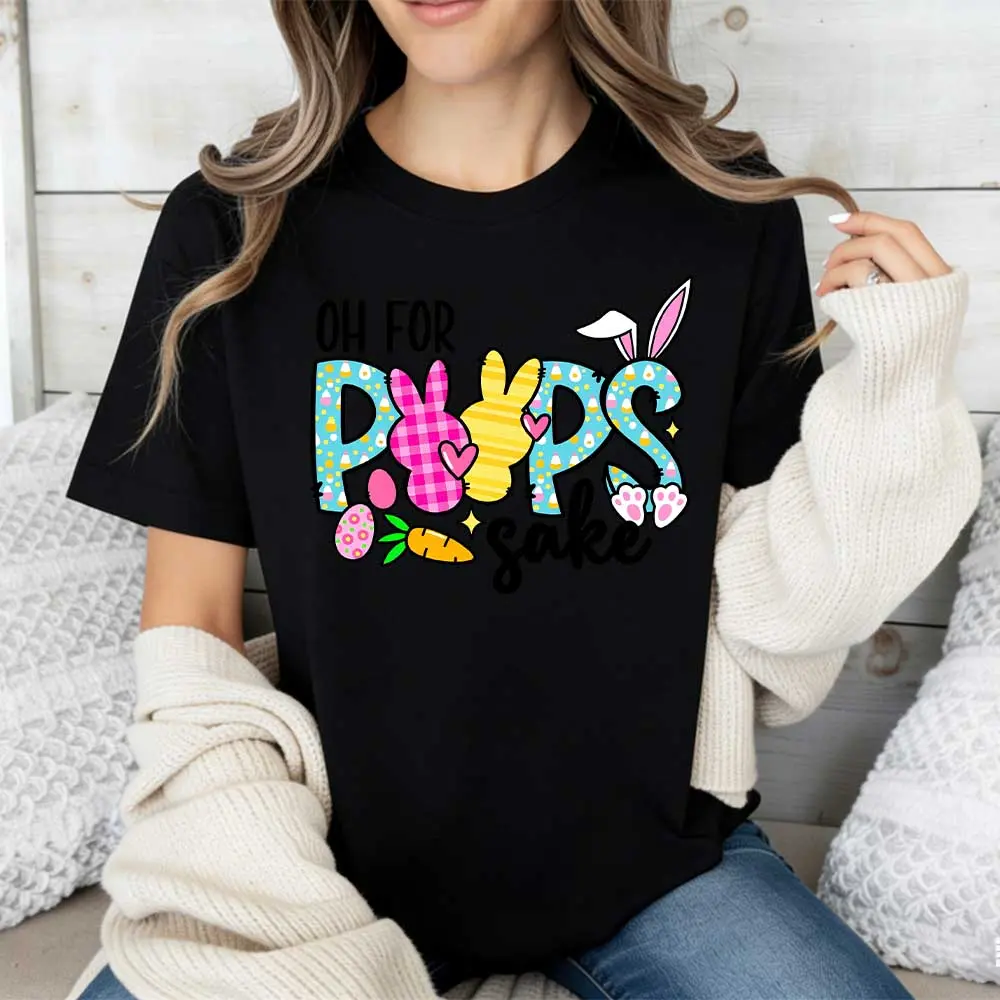 5. Oh, my goodness!Easter bunny and carrot pattern printed T-shirt, white round-neck casual top, suitable for women, perfect for Spring Festival parties