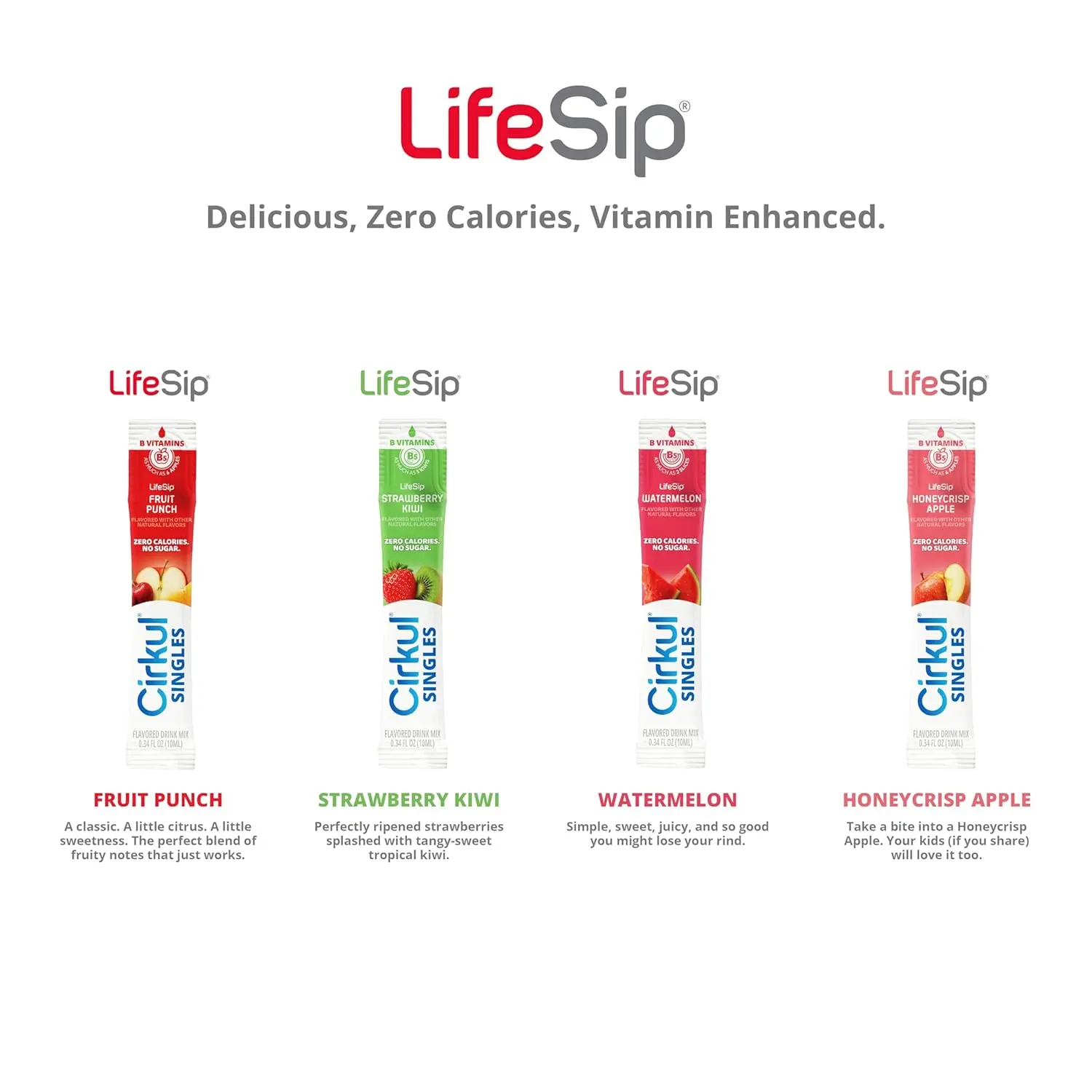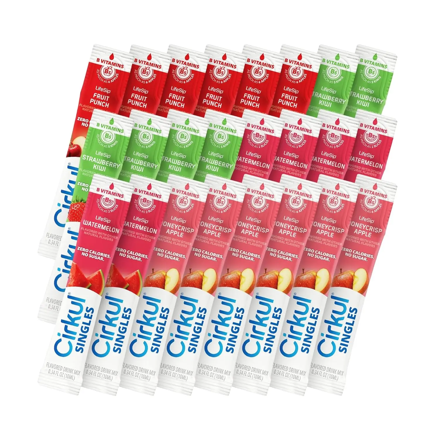 FeatureDetailsQuantity24 Liquid Concentrate PacketsFlavorsFruit Punch, Strawberry Kiwi, Apple, WatermelonDietary InfoSugar-Free, Zero Calorie, Keto-FriendlyKey IngredientsB Vitamins (B3, B5, B6, B12), No Artificial ColorsPortabilitySingle-Serve Travel-Ready Packets