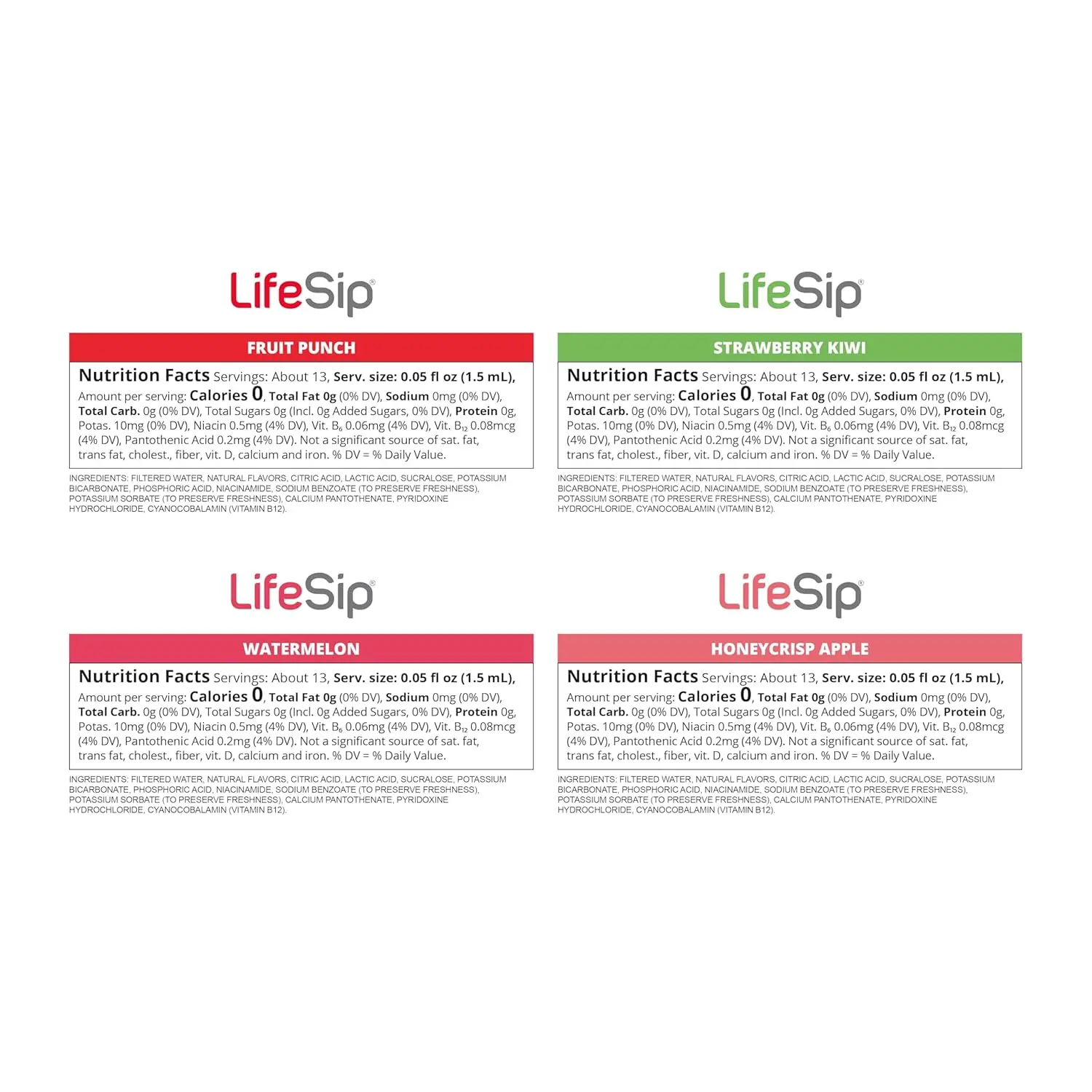 Stay hydrated and energized with this Sugar-Free Clear Liquid Water Flavoring Variety Pack. Designed for health-conscious individuals who want to enhance their water without the mess of powders, this 24-count collection features a refreshing mix of Fruit Punch, Strawberry Kiwi, Apple, and Watermelon. Each liquid concentrate packet is enriched with B Vitamins and contains zero calories, making it the perfect guilt-free way to reach your daily hydration goals.