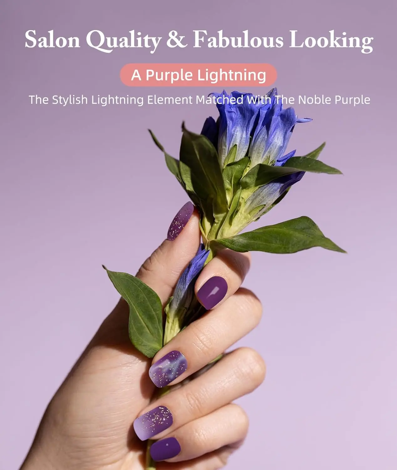 4. Semi Cured Gel Nail Strips, 28 pcs UV Gel Nail Stickers Full Nails Wraps for Women Home DIY Nails Art, UV Light Required(Purple Lightning)