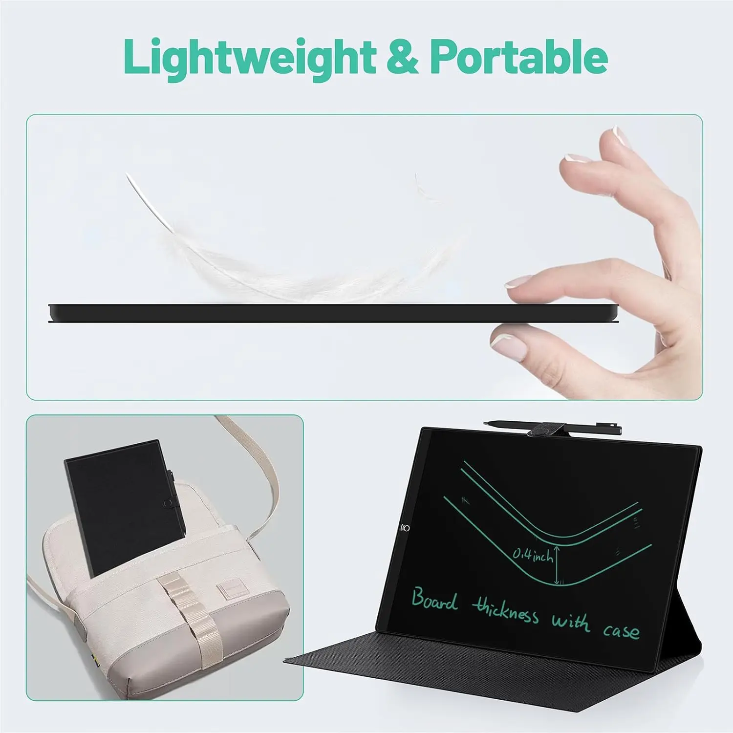 Measuring just 0.4 inches thin and weighing only 0.8 pounds, it can effortlessly fit into school bags, handbags or travel bags