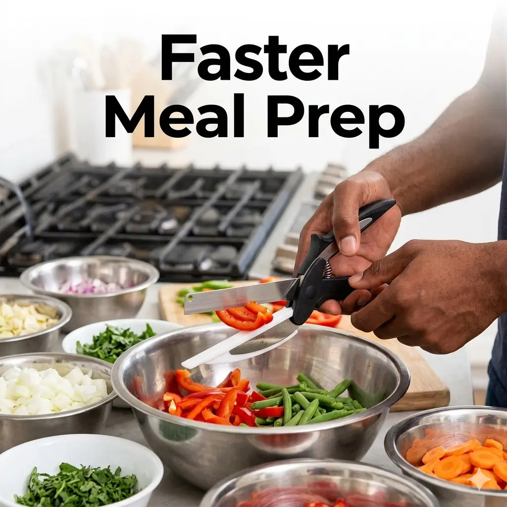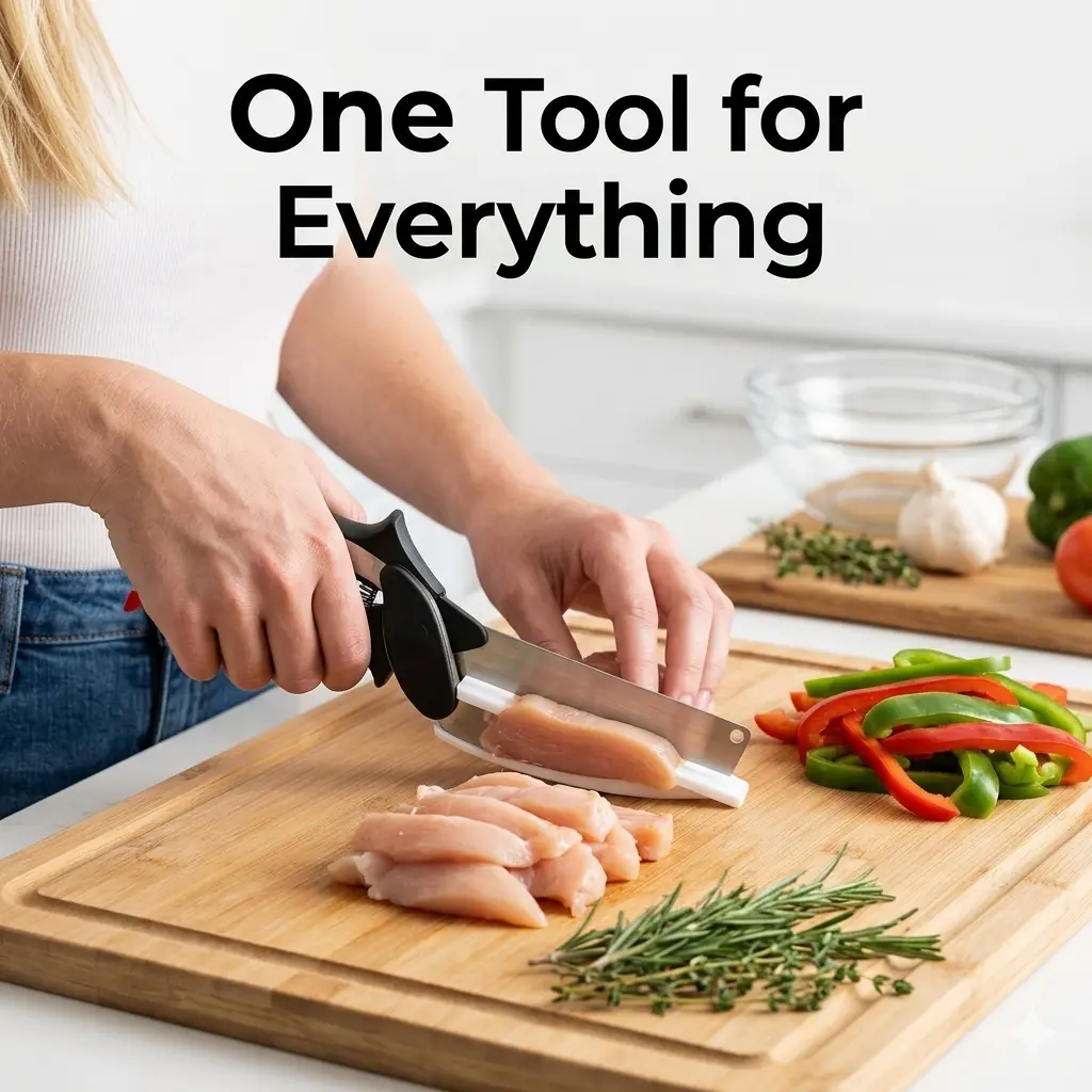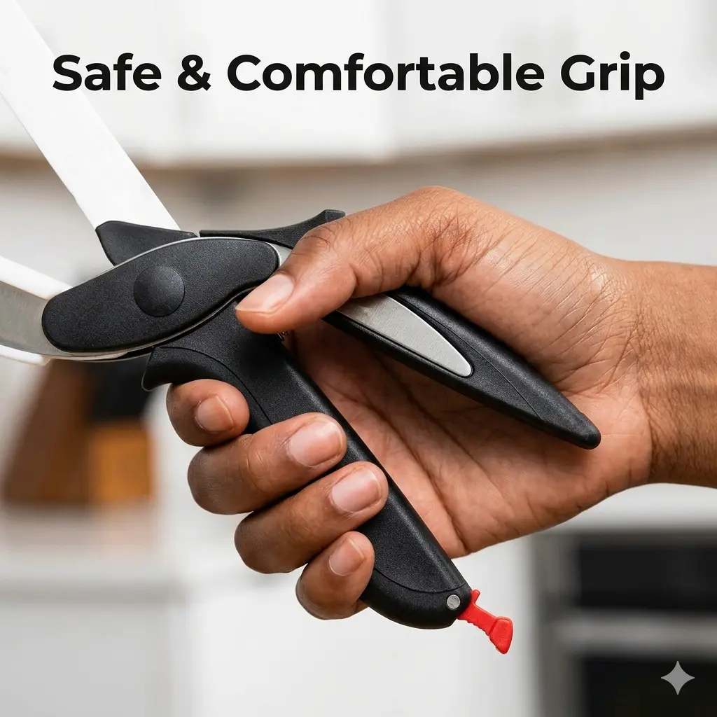 2-in-1 Kitchen Scissors with Built-In Cutting Board, Stainless Steel Food Shears with Safety Lock, Easy Cutter for Meat, Chicken, Vegetables, Fruit and Cheese