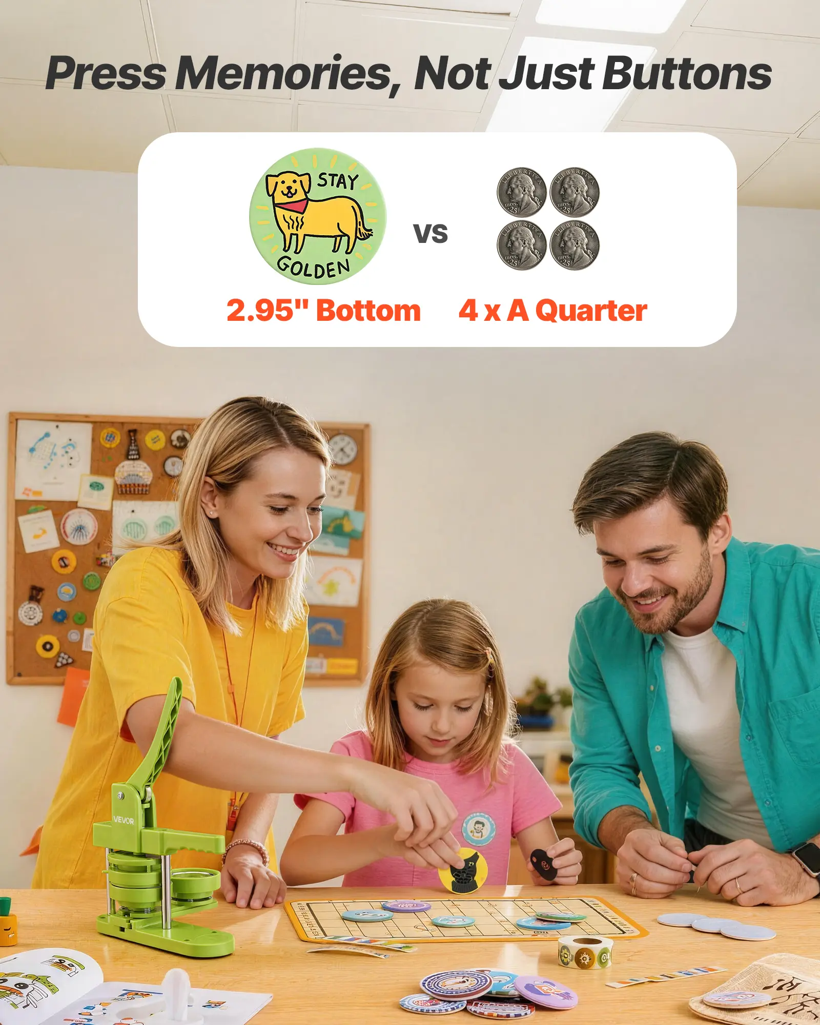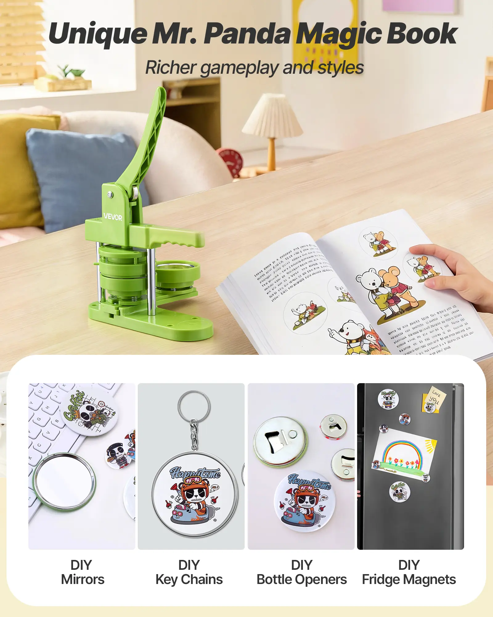 Make Personalized Presents: Design custom badges for any occasion. Our button making machine also works with mirrors, keychains, bottle openers, and magnets—turn your creativity into one-of-a-kind, heartfelt keepsakes