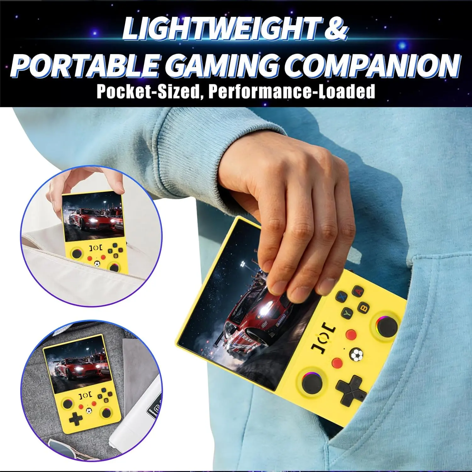 ·Pocket-Ready, Game-Ready:The R36MAX Ⅱ retro handheld game console compresses the classic memories into compact and portable segments. It is lightweight and compact, and can be easily tucked into a pocket or backpack. It is also equipped with a 4000 mAh battery, which can provide long-lasting power and allow you to play to your heart's content. When you are traveling, waiting in line or taking a break, you can take it out at any time to play, allowing the classic to be brought back and allowing nostalgia to flow unrestrictedly