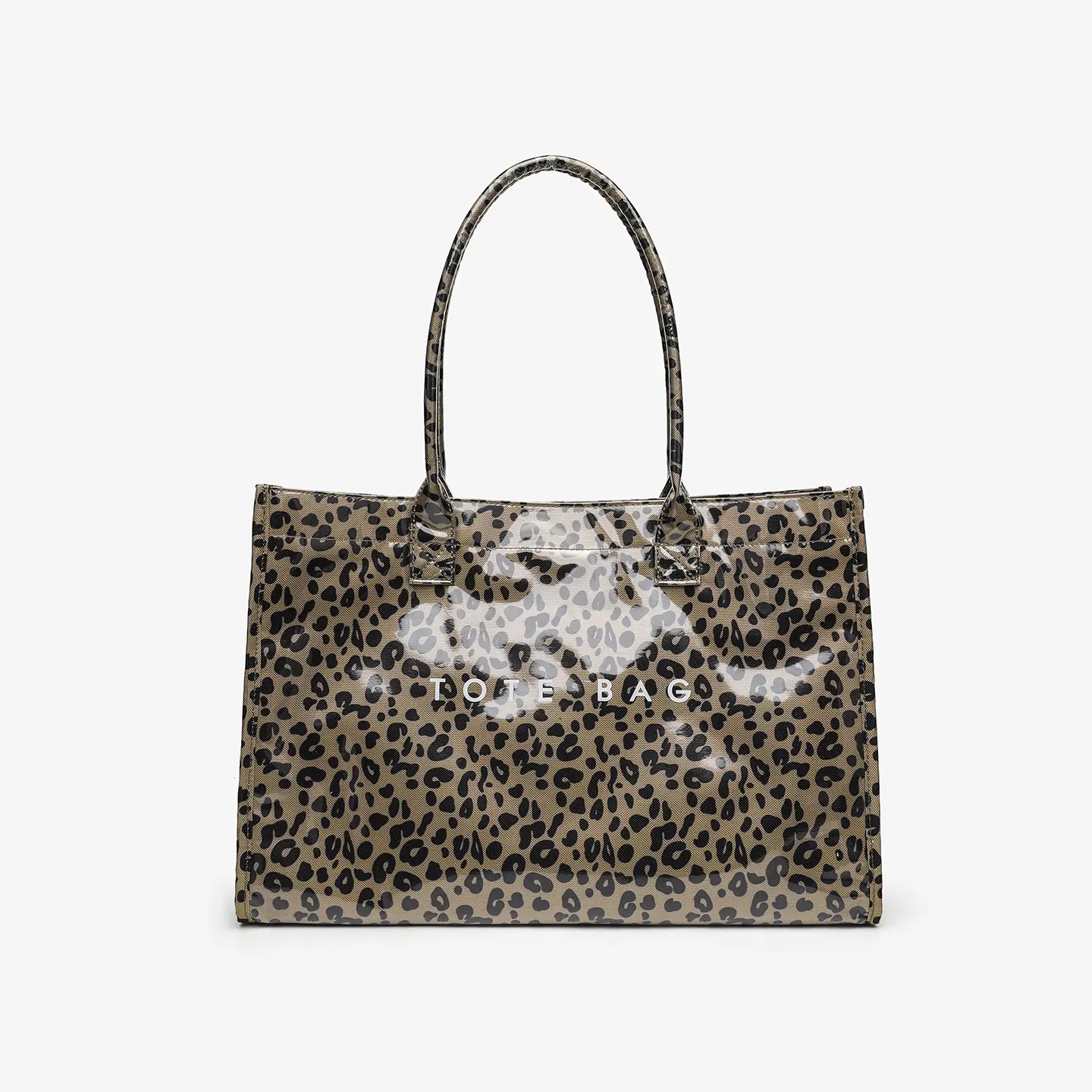 STOWM Leopard Print Jelly Tote Bag combines bold fashion with everyday practicality. This waterproof PVC handbag features a trendy leopard pattern on a solid color base, giving you a spacious, lightweight tote that stands up to rain, spills, and daily wear. Whether you're heading to the beach, grocery shopping, or running errands, this bag keeps your essentials safe and your look on point.