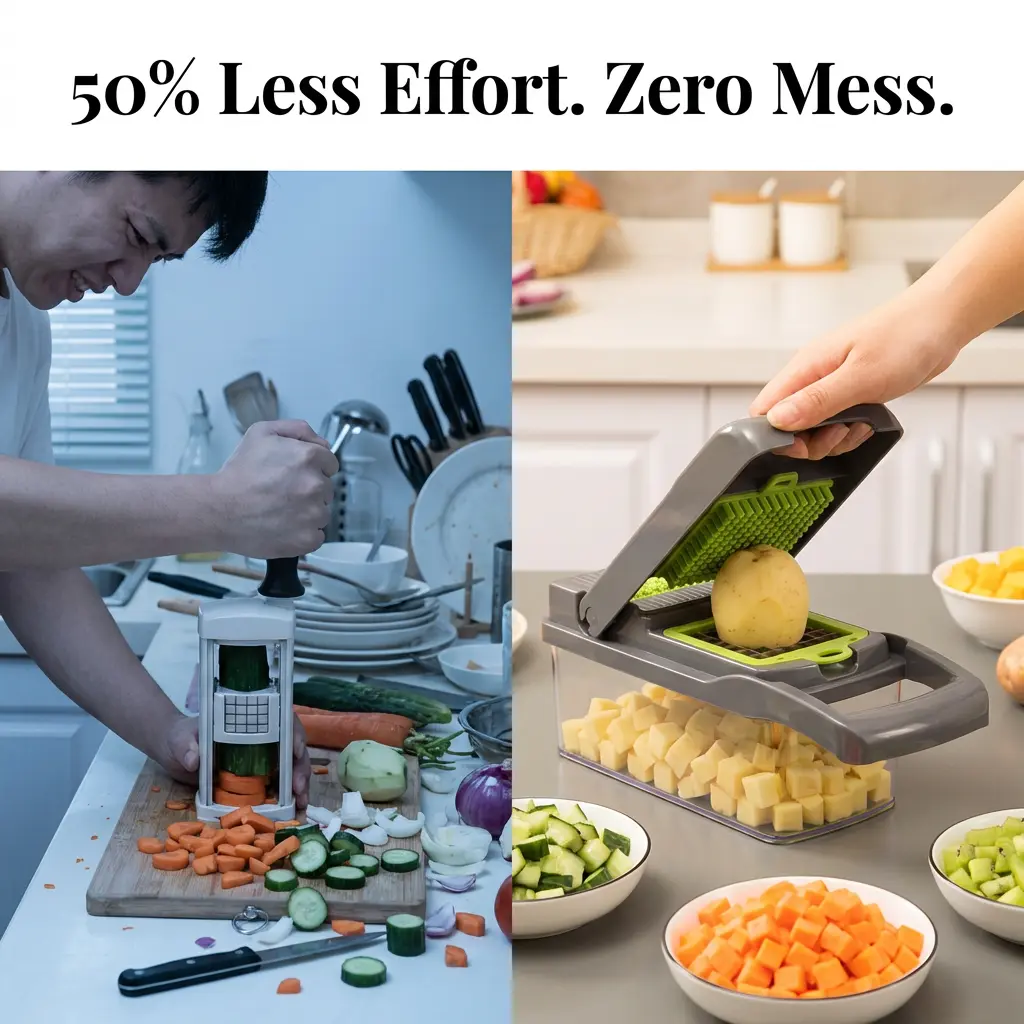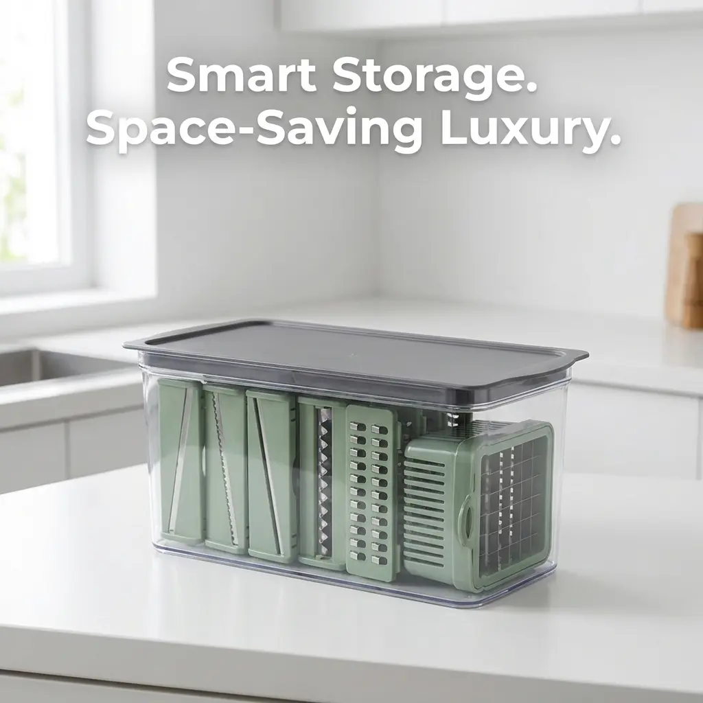·[12-in-1 Complete Culinary Set]: One station for every cut.Includes dicing blades, slicing discs, julienne cutters, and even a storage container.Replaces 12 bulky tools to keep your counter clutter-free.
