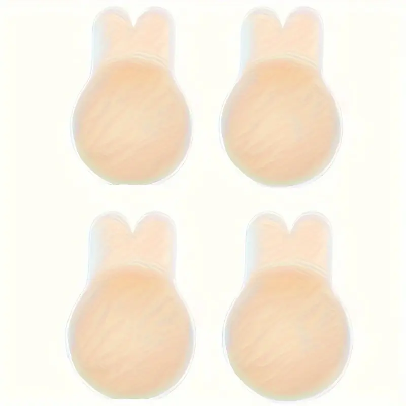 4pcs Reusable Silicone Breast Lifters - Invisible Rabbit Ear Breast Stickers, Soft Breathable Anti-Sweat Anti-Slip Push Up Nipple Covers for Strapless Dresses