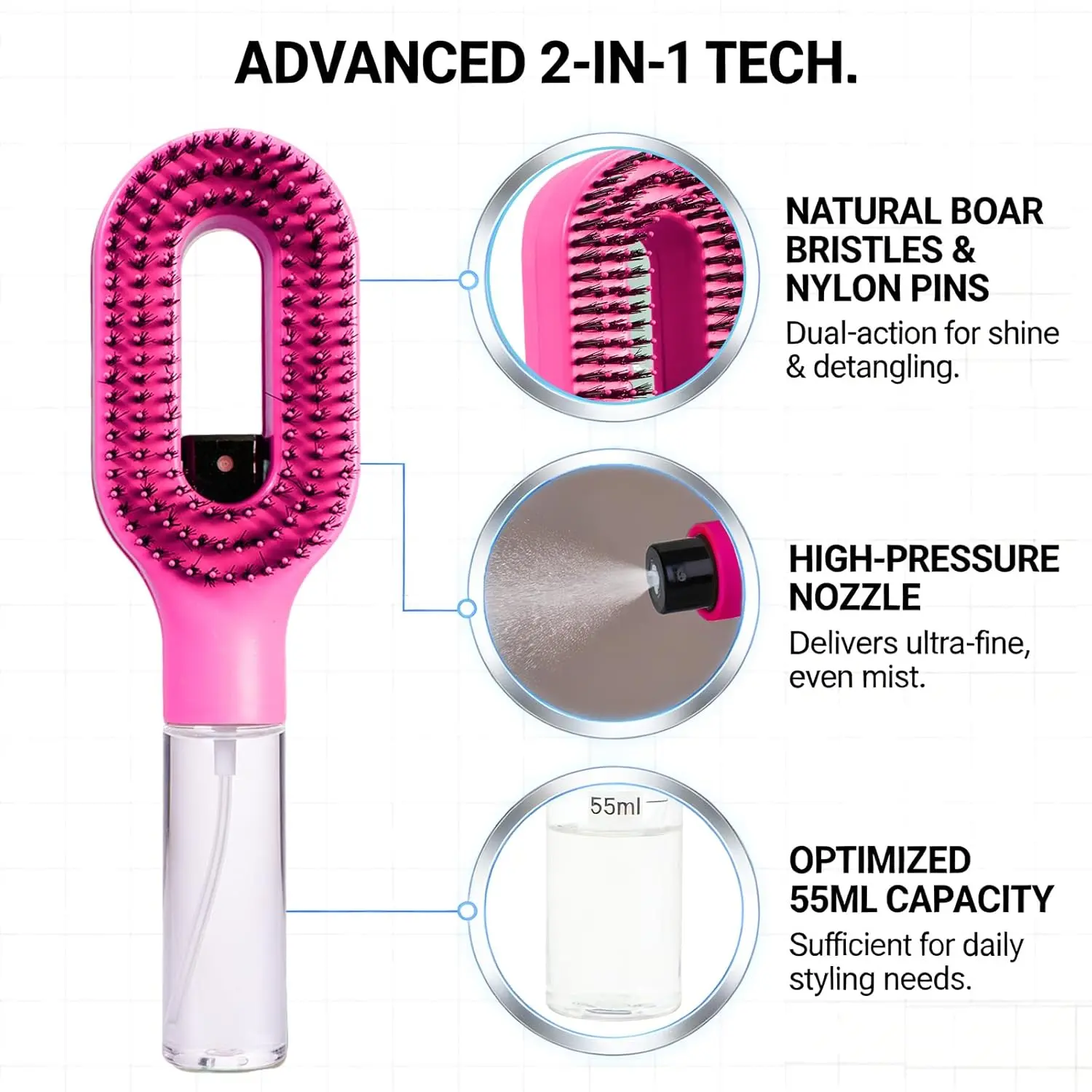 [Revolutionary 2-in-1 Design Saves Time] Combine brushing and misting in one handy tool – no more juggling separate spray bottles!Perfect for busy mornings, mid-day touch-ups, or post-workout refresh, giving you salon-worthy results in seconds.