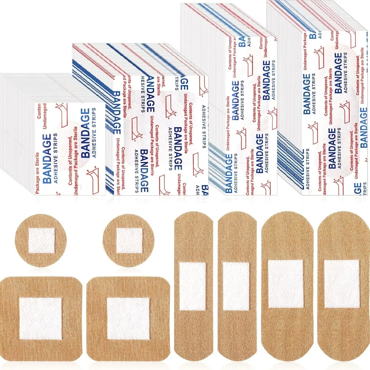 100/200pcs Flexible Fabric Adhesive Bandages Bulk Assorted Bandages Breathable Bandages Fingertip Bandages for Finger Wound Family First Aid Skin Wrap (4 Styles)